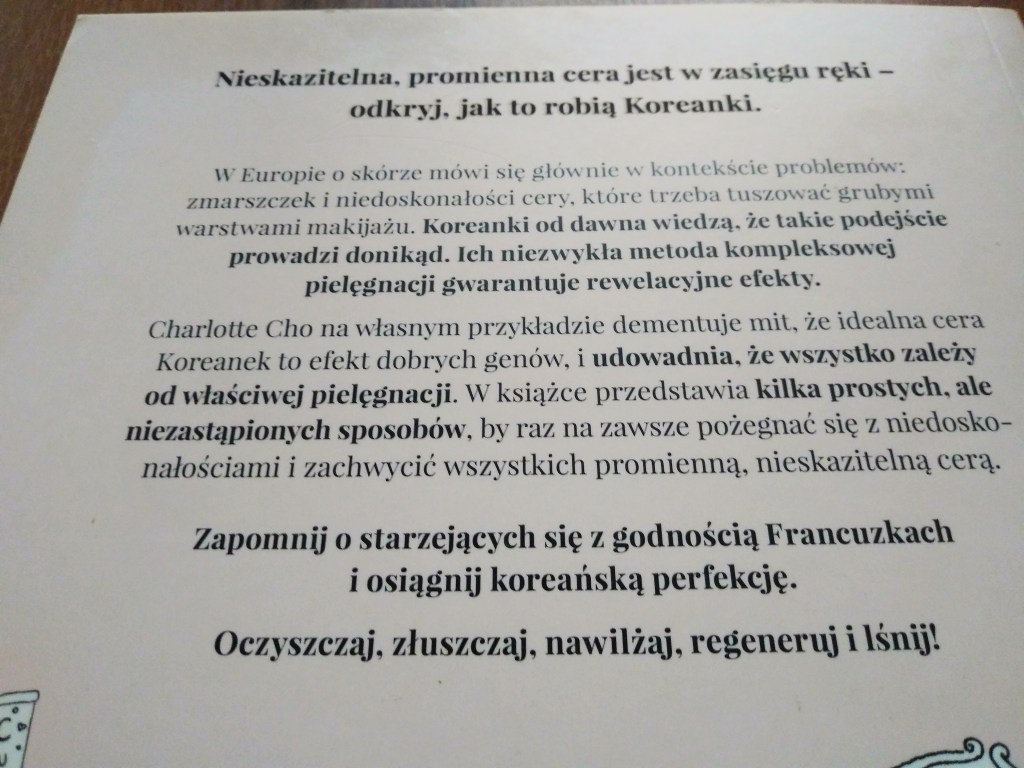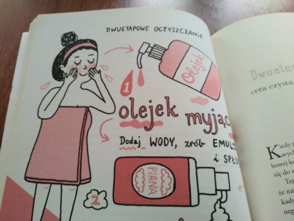 Autorka opisuje w prosty i ciekawy sposób wpływ słońca na skórę, jakich masek, czy serum używać. Jakich składników w kosmetykach szukać. Najważniejsze, to poznać swoją skórę i jej potrzeby. Wtedy można odpowiednio ją pielęgnować. Oczywiście nie da się tego zrobić od razu. Ale im szybciej tym lepiej. Wiadomo. Ja widzę na swoim przykładzie poprawę odkąd myję twarz olejkiem i nakładam maski w płachcie 🙂 Polecam książkę, bo to w sumie niezła kopalnia wiedzy 🙂