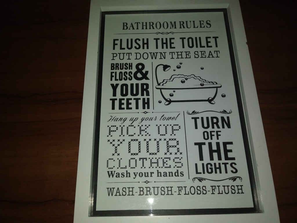 Pierwszy na tapetę idzie mały plakat w ramce, który nadaje się tylko do łazienki 🙂 Lubię takie grafiki. W tej chwili obrazek stoi na półce nad wanną, ale w nowym domu zawiśnie już oczywiście na ścianie