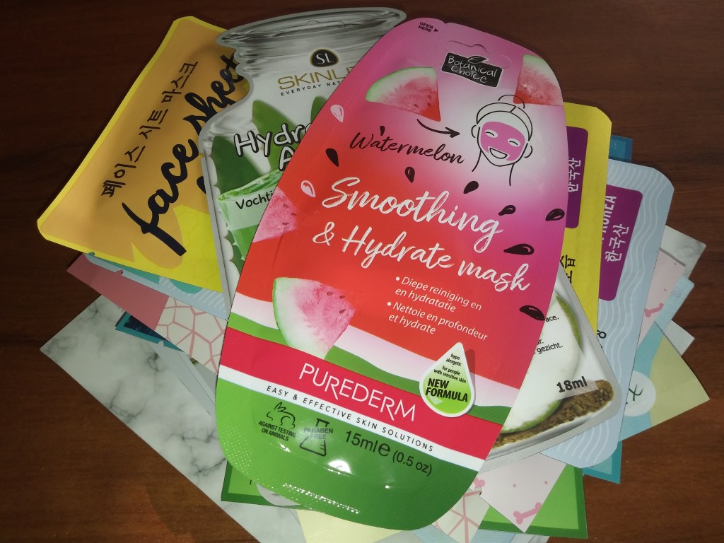 Nie chodzi o maseczki przeciw wirusowi. Chodzi o takie, które wynalazłam w drogerii Etos i sklepie Action. W Etosie akurat była promocja, bo wystawiono tekturową półkę z różnymi maskami po 1 euro 🙂 A ja idąc do drogerii np po szampon, wychodzę zawsze z jakąś maseczką, od których już się chyba uzależniłam 🙂 A wiem, że stosowane regularnie, przynoszą efekty i korzyści dla skóry. Najlepsze są właśnie te w płachcie, bo m.in. nie trzeba ich zmywać- wystarczy zdjąć materiał a resztę wmasować w skórę twarzy i szyi. Preferuję te nawilżające lub przeciwzmarszczkowe. Czasem nakładam oczyszczającą albo rozświetlającą.
