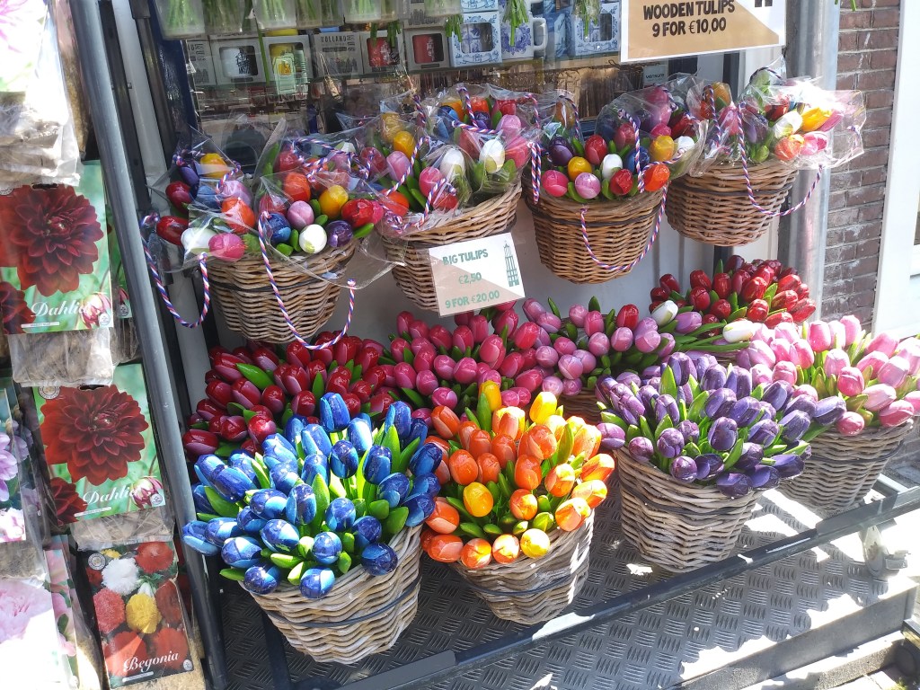 Tulipany- wiadomo, cebulki kwiatowe znajdziemy niemal wszędzie i to trzeba nabyć. Przecież z tego słynie Holandia. Trzeba tylko dokładnie obejrzeć, czy są dobrej jakości, zdrowe i czy nie czuć pleśni. Fajne są także sztuczne tulipany. Ale nie plastikowe! Proponuję te drewniane 🙂