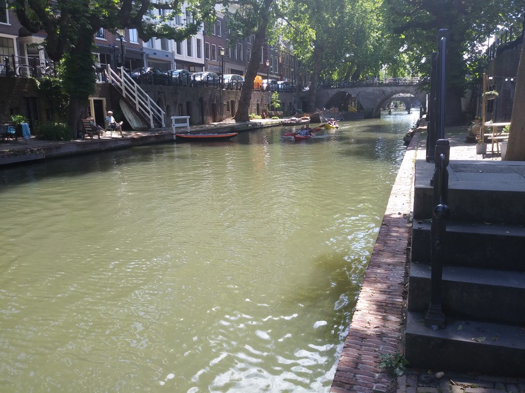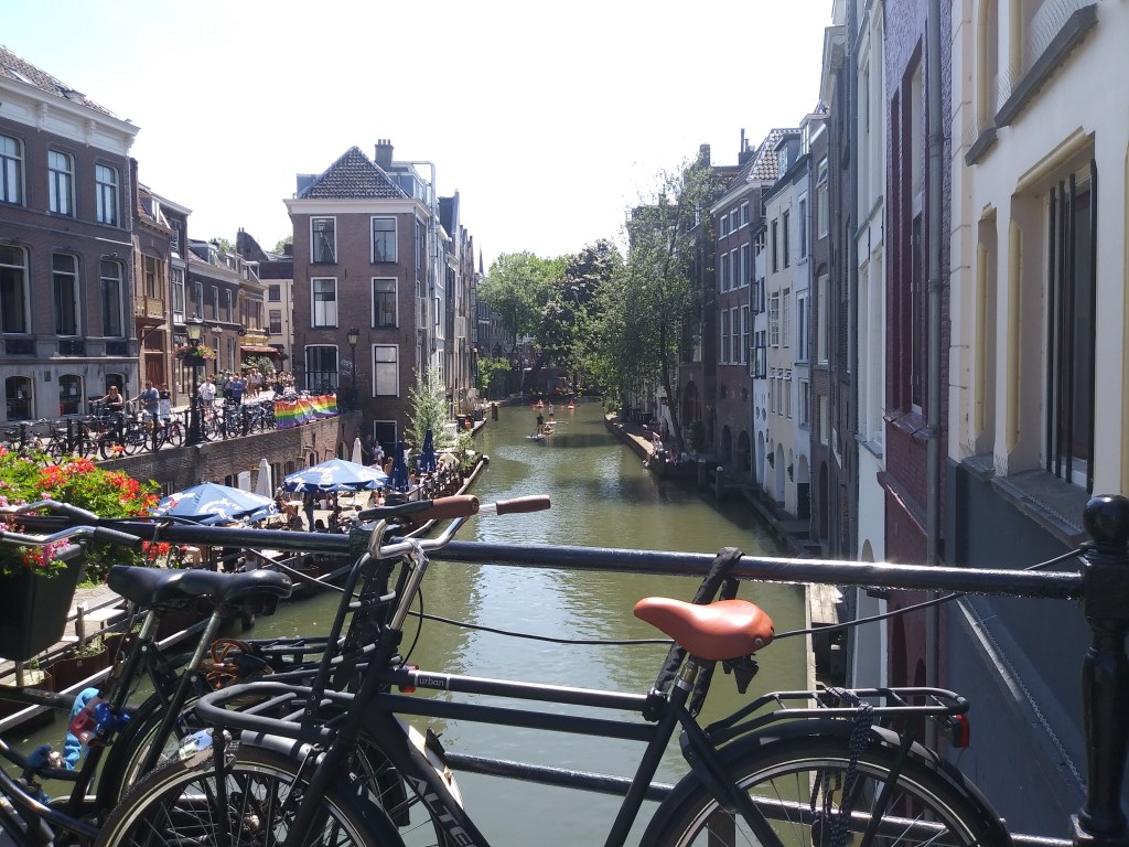 To była nasza trzecia wizyta w tym mieście. Będzie jeszcze kolejna, bo wszystkiego nie zdołaliśmy zobaczyć. Tym razem udało się pojechać w miesiącu letnim. Pogoda dopisała i poszliśmy się powłóczyć po mieście. Teraz, gdy jest ciepło, pierwsze, co rzuciło mi się w oczy, to to, że Utrecht tonie w zieleni 🙂 Oprócz dużych skupisk drzew, można iść do parku przez który płynie oczywiście kanał, usiąść na zielonej trawie i po prostu posiedzieć. Zresztą widziałam ludzi, którzy siedzą tam, leżą albo ćwiczą. Albo pływają łódkami po kanałach.