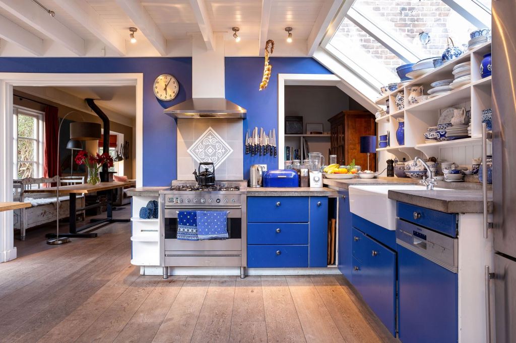Oglądając holenderskie domy, już dawno zauważyłam, że ludzie tutaj nie boją się mocnych kolorów we wnętrzach domów. Jak Holender/Holenderka lubią jakiś, to nie ma zmiłuj 🙂 Nie przeszkadzają im kolorowe ściany, kolorowe meble, czy pstrokate płytki. Ja patrzę „po polskiemu”, nie odpowiada mi dużo kolorowego koloru np na ścianach. Wolę stonowane barwy, np beże, szarości, biele… No raczej nigdy nie widziałam szaleństwa na ścianach Polaków. A tu tego problemu nie mają. Pewnie myślą: lubię fiolet, to walnę taki na ścianie wzdłuż schodów, a co tam! Serio, widziałam taki kolor wściekle fioletowy 😀 Dla mnie- koszmarek. Poniżej kilka przykładów.