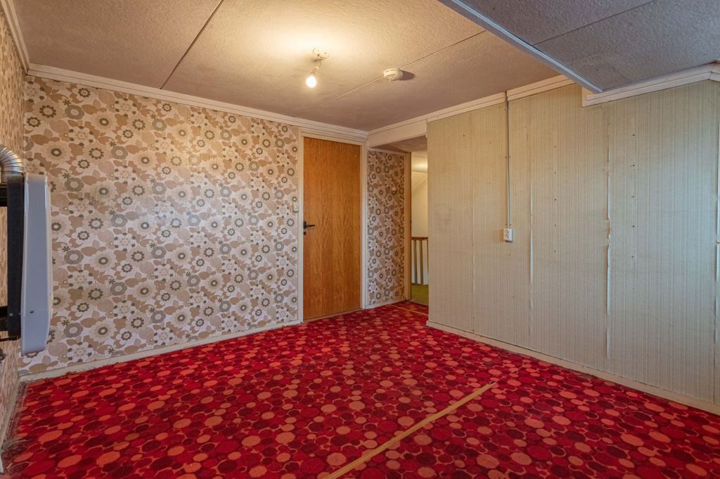 I na koniec prawdziwa „perełka”. Mój mózg nie ogarnia. Już nawet tę tapetę jestem w stanie od biedy zdzierżyć. Ale podłoga to istny koszmarek. W tej sytuacji, jakich mebli bym tu nie dobrała- wszystko by wyglądało strasznie. Jestem zdania, że jeśli już chcemy szaleć, to albo ze ścianą, albo z podłogą. Jak w makijażu: albo oczy, albo usta. Jak to się mówi: więcej, nie znaczy lepiej 🙂
