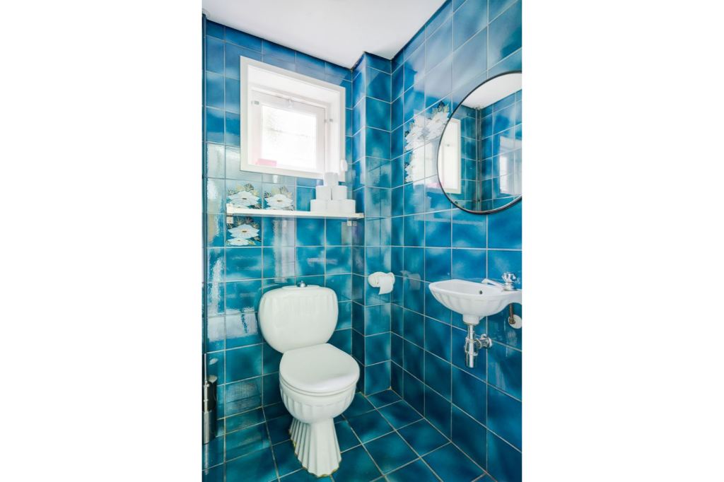 Piszę tu oczywiście swoje zdanie, więc: kolor płytek za ciemny (do tego te kwiatki…). I zmieniłabym też kształt wc i umywalki. Już nawet nie chodzi o ten nieszczęsny wygląd. Jak to w ogóle myć?!