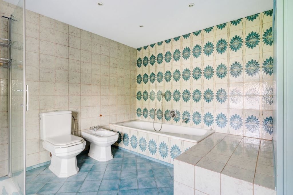 Płytki na podłodze ok. Reszta weg! Gdyby nie to coś a la kwiaty na kafelkach ściennych i wannie, można by to jakoś przeżyć. Poza tym sam kształt wc i pisuaru nie odpowiada mi niestety