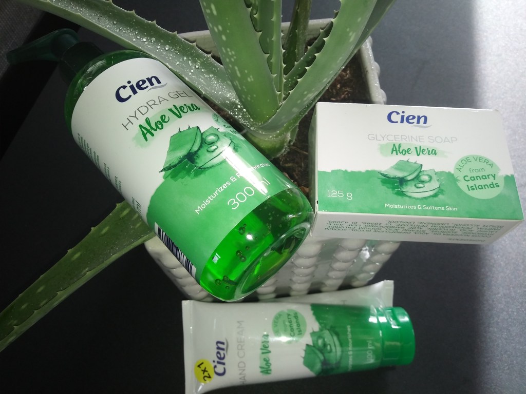 Ostatnio w Lidlu pojawiła się półka z produktami na bazie aloesu pochodzącego z Wysp Kanaryjskich: kremy do rąk pakowane × 2, żele nawilżające, mydła glicerynowe i kremy 2 w 1: do twarzy i ciała. Nie mogłam przejść obok tego obojętnie, tym bardziej, że cena była fajna. Mam kremy do rąk, mydło i żel. Zapach kremów jest zbyt słodki, przez co mdły dla mnie, ale szybko się ulatnia. To akurat nie jest problem. Ważne, że dobrze nawilża 🙂