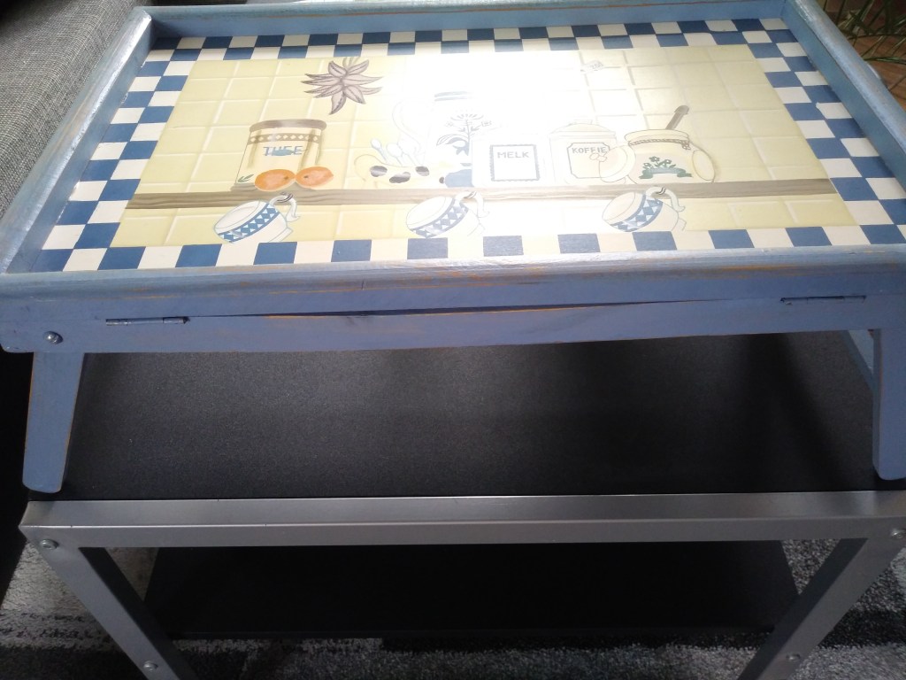 Zobaczyłam stolik przeznaczony do jedzenia w łóżku 😬 Ja nie jestem zwolenniczką takiego spożywania jadła. Koszmarem dla mnie są okruchy i plamy. Ale np w filmach wiele razy widziałam sceny, gdzie bohaterowie tak jedzą i to wyglądało nawet, nawet… No, ale to film przecież, nie realia. Mimo to, wzięłam ten stolik, bo spodobał mi się obrazek na nim i ważne, że drewniany, a nie plastikowy 🙂 I mam postanowienie: wypróbuję go w nowym domu 😊