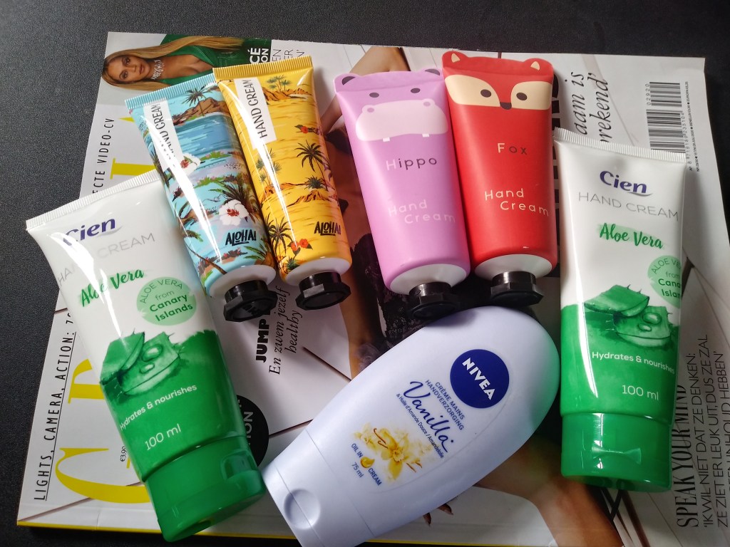 Kremów do rąk nigdy nie za mało 🙂 Niektóre są z Actiona, dwa z Lidla… W domu są wszędzie, bo nie lubię suchych rąk. A mgiełki do twarzy firmy Ziaja uwielbiam! Jestem uzależniona 😍 Są tanie i baaaardzo dobre 🙂