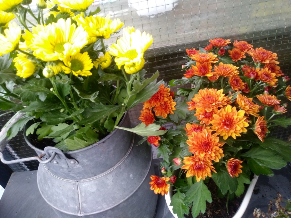 Będąc właśnie w Albert Hijnie, wyszłam nie tylko z bukietem słonecznikow, ale i kwiatami na balkon, bo niektóre już padły i trzeba było dosadzić żeby nie było tak łyso. Kupiłam celozje i chryzantemy, które tu nie kojarzą się akurat z cmentarzem 😉 Innym razem dorwałam palmę. Dwie poprzednie- kokosowe, niestety mi padły 😣 Nie potrafię ich w domu utrzymać. Są zresztą bardzo wymagające. Ta, którą mam obecnie, to chyba palma królewska. Marzy mi się jeszcze areca.