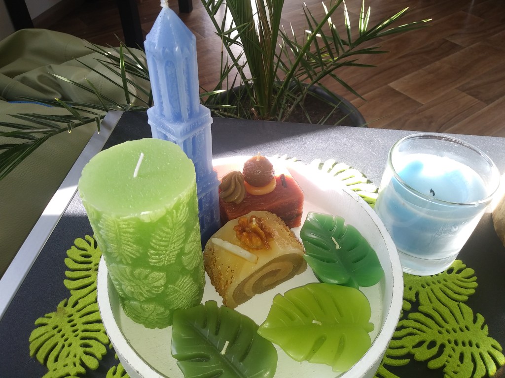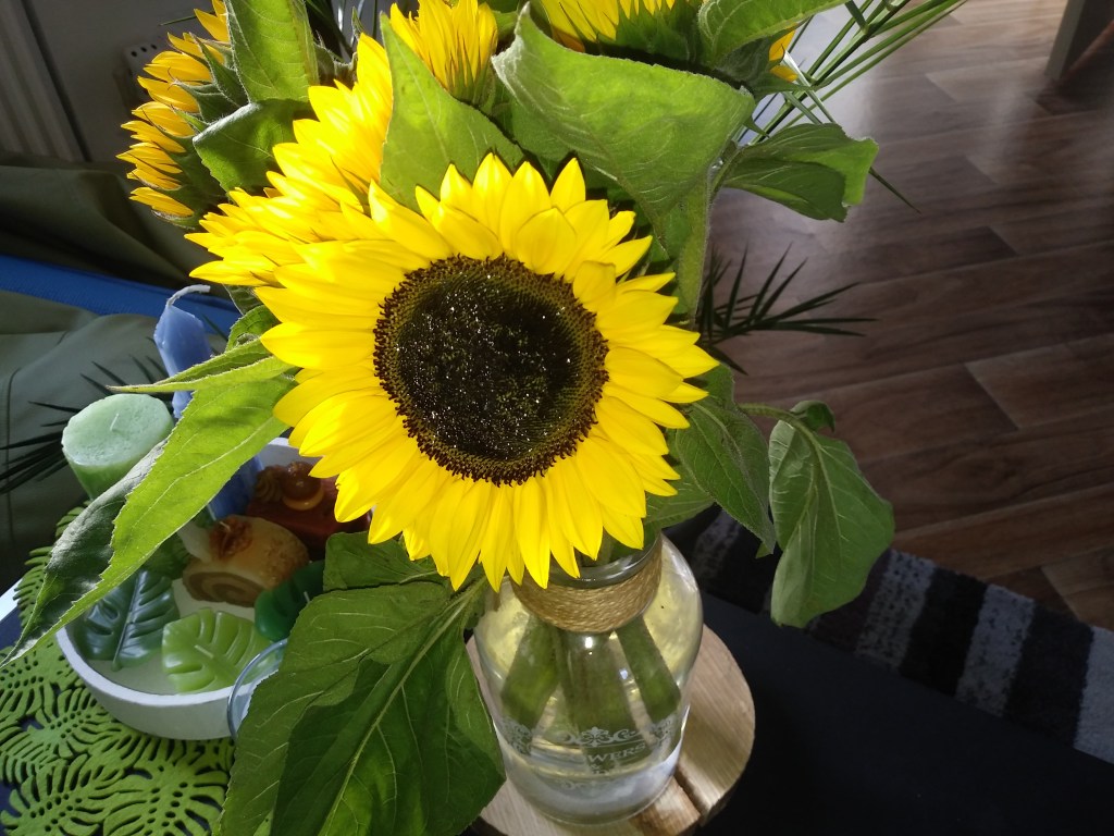 W domu staram się mieć w wazonie świeże kwiaty. Lubię słoneczniki, zaraz po tulipanach 🌻🌷 W Lidlu przy kasie zazwyczaj stoją wiadra z cietymi kwiatami i zawsze coś wynajdę 🙂 Te akurat są z Albert Hijna, bo tam też spory wybór. Świeczki różnego kalibru też lubię. Nie tylko zapachowe. Te o fajnych kształtach od razu rzucają mi się w oczy. Motyw liścia monstery bardzo mi się podoba, a to od kilku sezonów hit wnętrzarski. W Actionie jest duży wybór świec, jak np ta na ostatnim zdjęciu, o zapachu tropikalnej dżungli.
