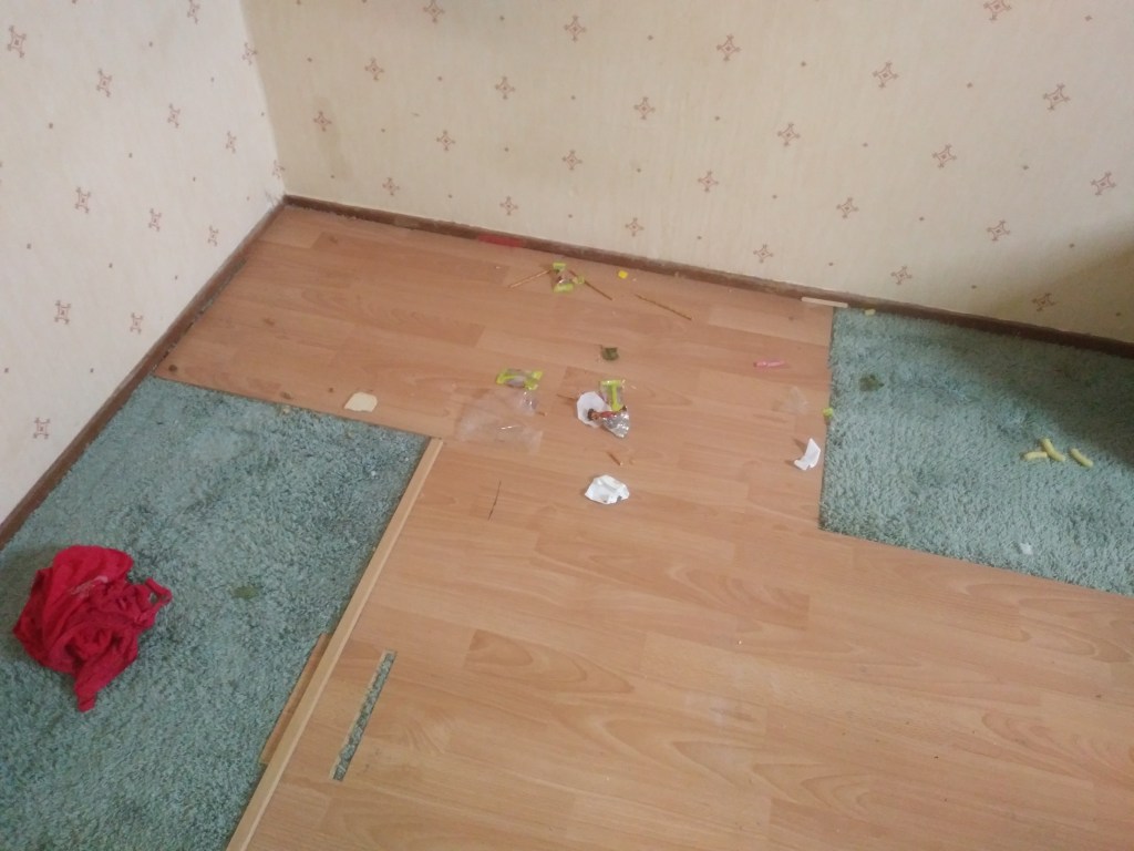 Jak Holender weźmie się za podłogi, to mucha nie siada 😂 Widziałam już dużo, ale paneli położonych na wykładzinę jeszcze nigdy. Mało tego! Paneli brakło, więc nie jest to skończone i tak sobie zostało. Kiedyś widziałam ścianę bez kawałka tapety. Pewnie też brakło. No więc zastawili szafą i po problemie. Tu pewnie było tak samo: łóżko, szafa i nie widać.