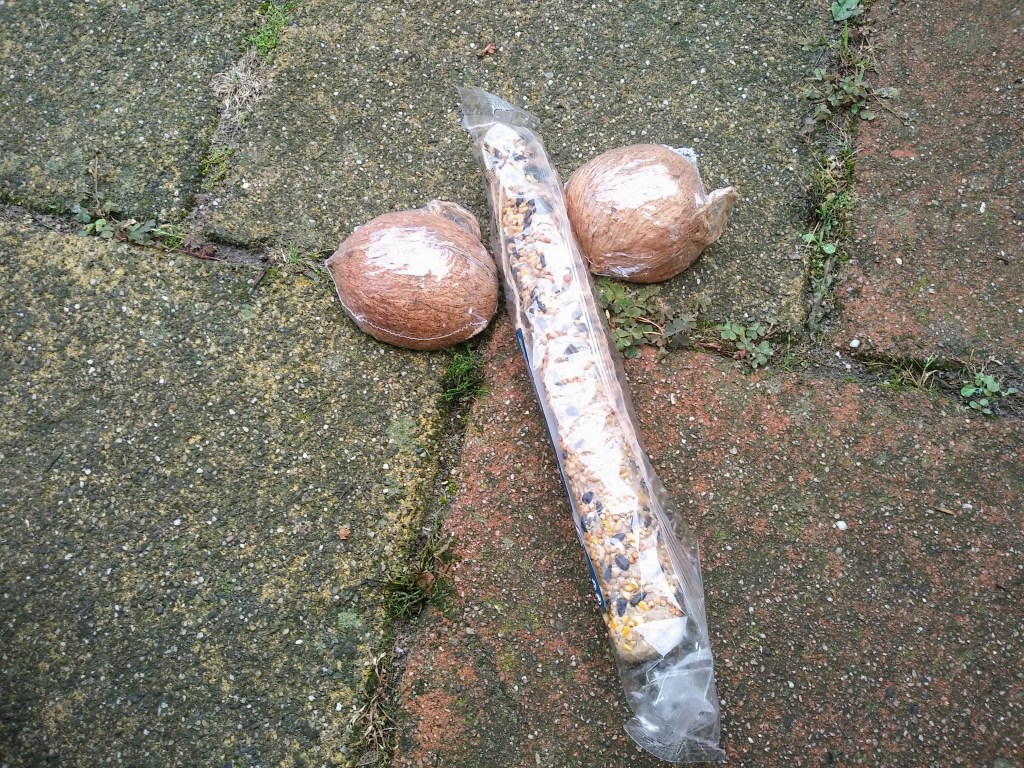 Na końcu podwórka mamy dwa drzewa, a w zasadzie to dwa wysokie pieńki i są to chyba wierzby, których tu pełno nad kanałami. Stwierdziłam, że powiesze na nich jedzenie dla ptactwa 🙂 W sprzedaży były m.in kolby z ziarnami i połówki kokosów, w których, w tłuszczu, zatopione są ziarna. Kupiłam to i zaraz idę wieszać 🙂 W sklepie było też mnóstwo innych rzeczy 🙂