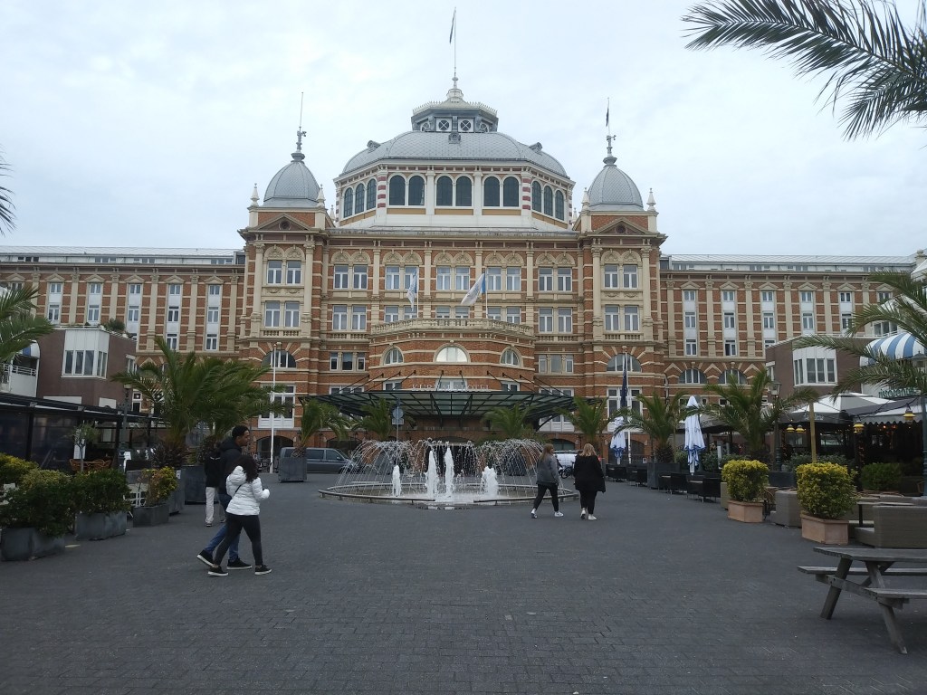 Na plaży wznosi się piękny hotel Kurhaus. Jego pełna nazwa brzmi Grand Hotel Amarath Kurhaus The Hague. Robi naprawdę duże wrażenie. Zresztą wg mnie jest podobny do naszego sopockiego Grand Hotelu 😊 Budynek wzniesiono w latach 1884-1885. Został zaprojektowany przez niemieckich architektów i posiadał wielką salę koncertową i 120 pokoi. Lata 60te przyniosły kurortowi kryzys, bo popularne stały się podróże zagraniczne. Holendrzy porzucili swoje plaże na rzecz tych zagranicznych. Hotel zaczął popadać w ruinę. Na szczęście nie dopuszczono do tego, znalazły się pieniądze na remont i został wpisany na listę zabytków. Ponownego otwarcia dokonała księżniczka Beatrix.
