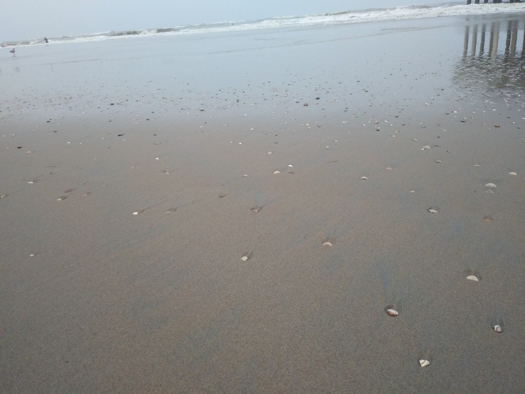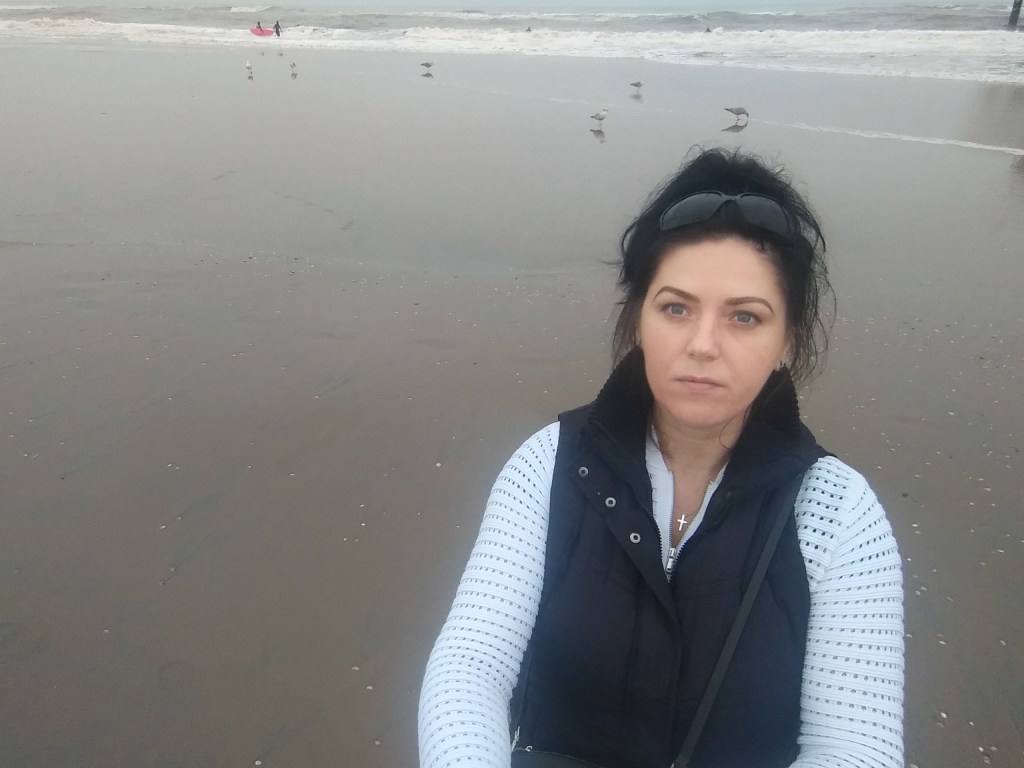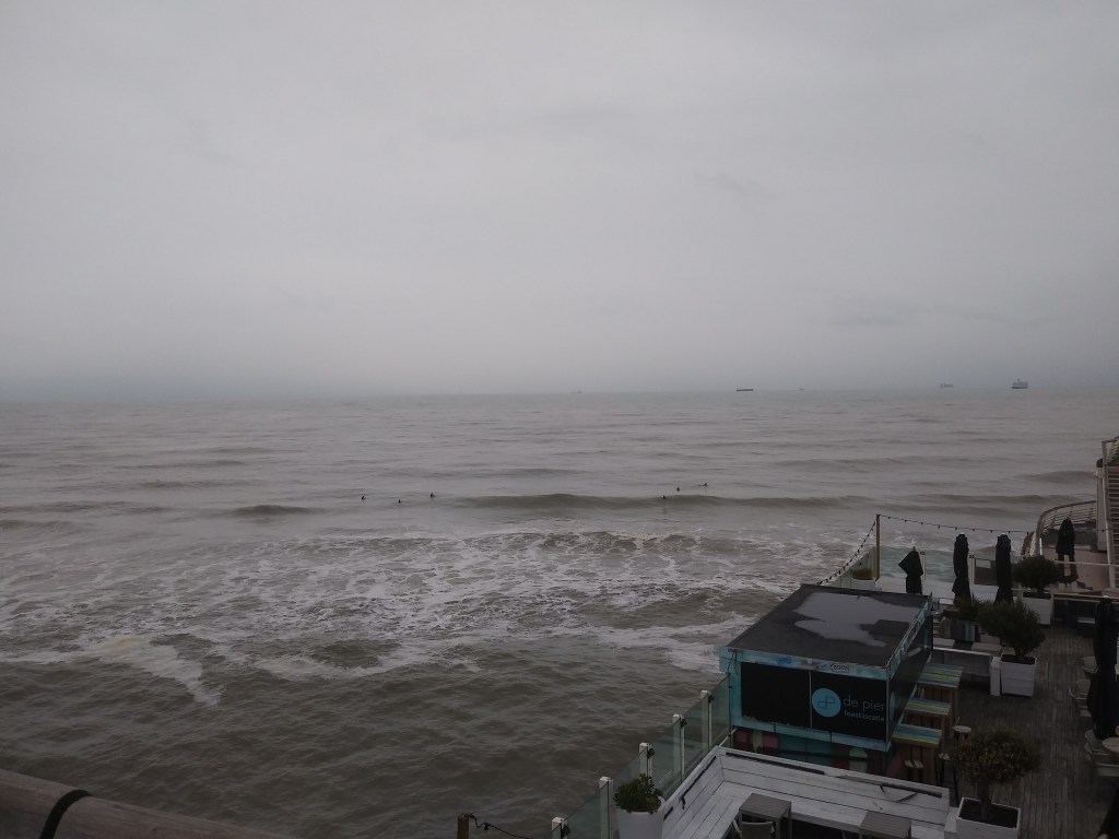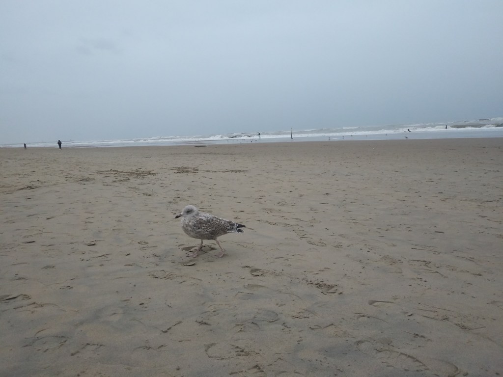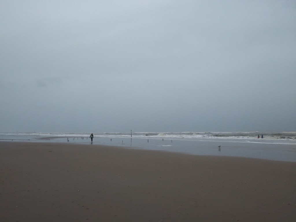 Po wyjściu z tego przeklętego koła, udaliśmy się dołem na plażę. Pan Mąż kupił gofra, bo mu pachniało 😀 I znowu przekonałam się, że holenderskie plaże są piękne i szerokie. Morze było wzburzone i wyglądało cudnie 😍🌊 W wodzie było sporo surferów. Ludzie nawet w kurtkach chodzili boso i miałam ochotę zrobić to samo 😊 Do hotelu od strony plaży, blisko nie podchodziliśmy. Wolałam gapić się na fale, mewy i muszle 🐚Chcemy tu przyjechać, gdy będzie ciepło i bezchmurnie, bo podobno zachody słońca są tu piękne 🌅