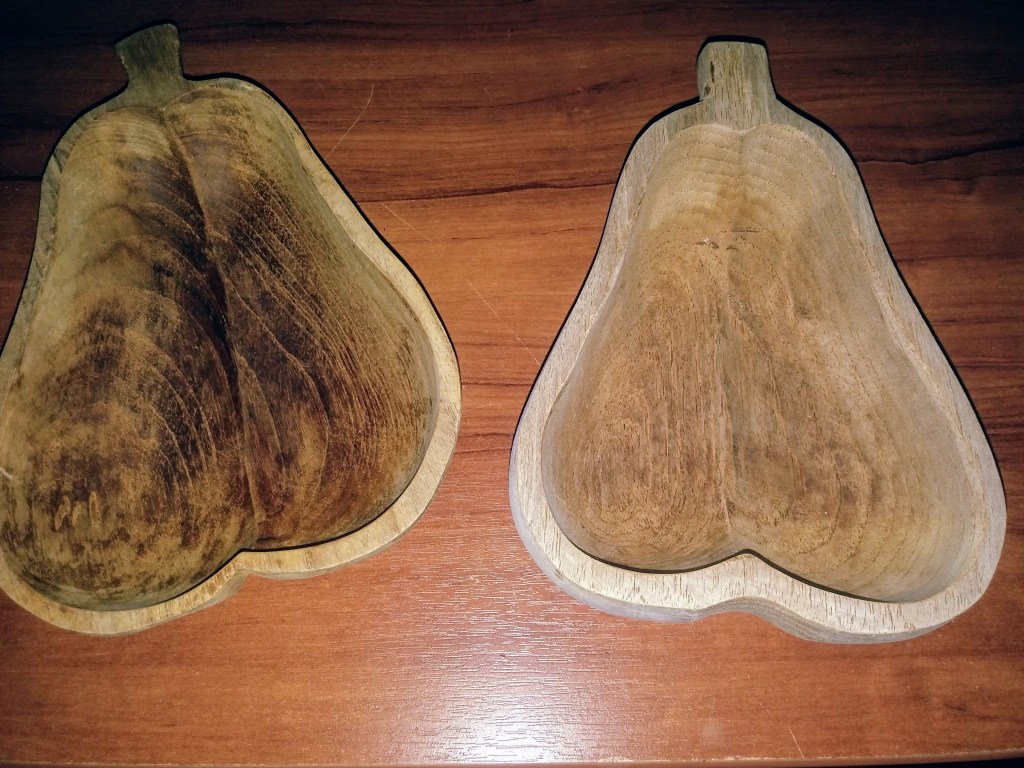 Znowu trzeba było kupić osłonkę na tę plastikową doniczke, w której rośnie kwiatek. Skąd wziąć? Należy udać się do kringloopa 😁 Tak, wiem, siedzę tam często. Ale po co przepłacać w ogrodniczym, skoro tam za centy można cuda na kiju znaleźć 🙂 Wpadłam tam i poszłam w regał z drewnianymi pierdołami. W oko wpadły mi drewniane gruszki 🍐🍐 Mam już jabłka 🍎🍎 więc gruszki do kompletu też muszą być 😛