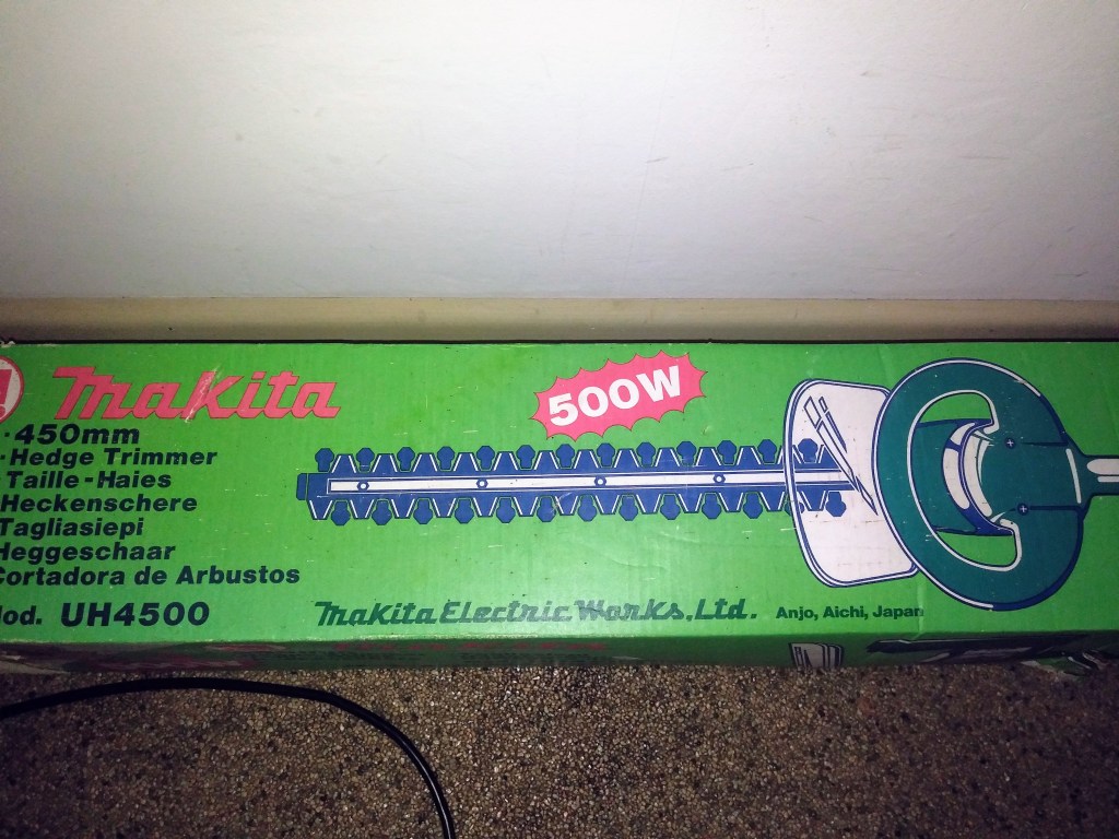 Pan Mąż zaopatrzył się wcześniej w nożyce do cięcia żywopłotu. Trzeba było wyrównać tę zieleninę przed zimą. Jednak ciąć ✂✂ to, wcale nie jest taką prostą sprawą. Próbowałam sama. W kringloopie mąż znalazł za 12 euro elektryczne „nożyce”-trymer firmy Makita. Nie są nowe, mają ślady użytkowania, ale są w dobrym stanie. Teraz z żywopłotem pójdzie łatwiej 🙂