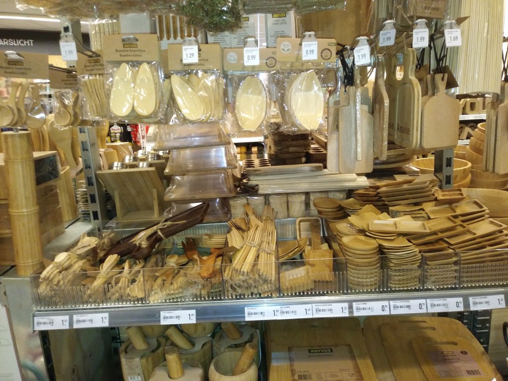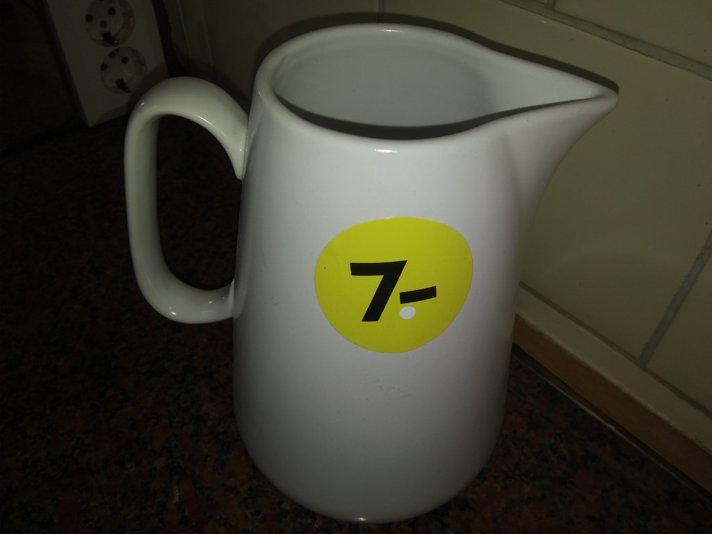 Wybraliśmy się także do Xenosa (sklep z wyposażeniem: meble do domu, np komody i różne gadżety, m.in kuchenne). Szukałam chlebaka. Znalazłam ostatnią sztukę- obok ceny napisane było, że z bambusa 😳 Oprócz tego dzbanek. Biały, prosty, za 7 euro.