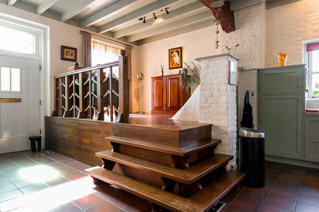 Korytarz- bajka 😊 Długi, podłoga drewniana, drewniane poręcze schodów i drewniana komoda. Sama bym takiej z chęcią poszukała na pchlim targu albo w kringloopie. Ten korytarz kojarzy mi się z filmami produkcji amerykańskiej, bo tam też mają takie długie korytarze- szczególnie w horrorach 😜