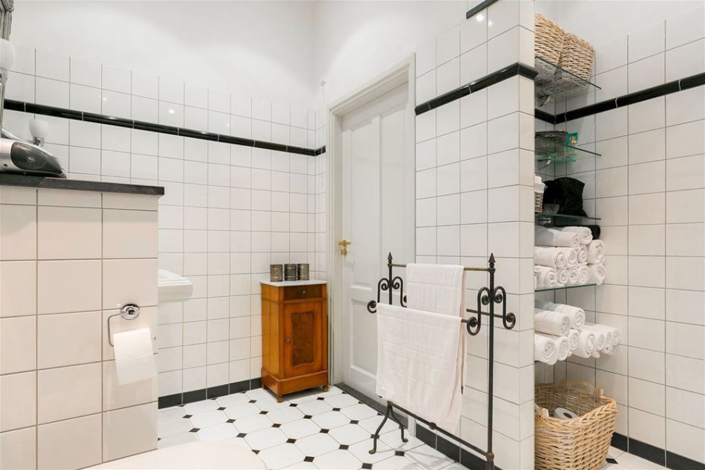 W łazience też widać styl retro, np mała drewniana szafka, stojak na ręczniki, czy płytki. Niestety więcej zdjęć nie posiadam i nie widać, czy jest tu wanna, czy prysznic i jak wyglądają