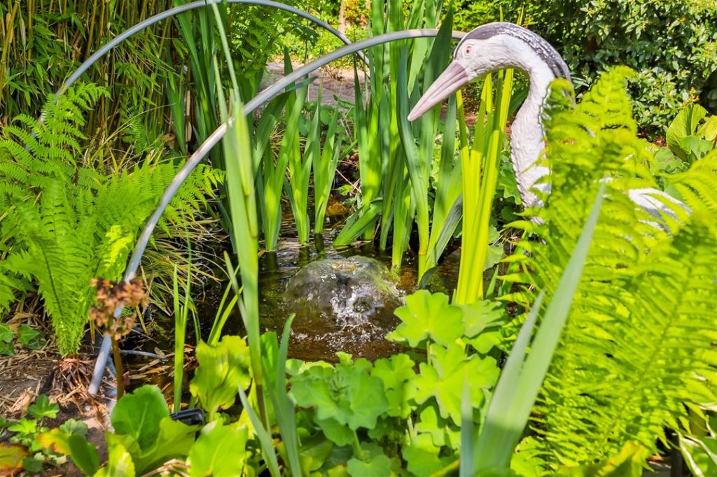Miejsce na mini oczko wodne też się znalazło 😊 Otoczone jest paprociami, wybija z niego malutka fontanna a obok stoi kamienna czapla.