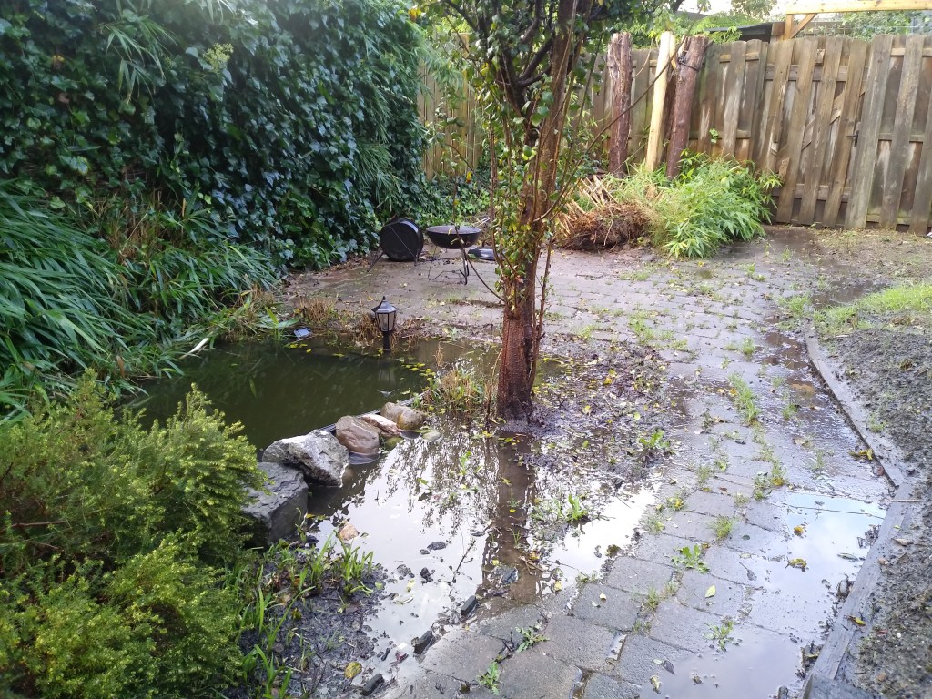 Padało niemal codziennie. Były może dwa dni, kiedy nie spadła kropla deszczu. Ale i tak było niemal non stop zachmurzone☁Na palcach jednej ręki mogę policzyć wyjście słonka 🌞 Pewnej soboty, ok 5:00 rano obudziła nas burza ⚡A którejś niedzieli, nawet… grad! A moje okropne bajoro wylało.