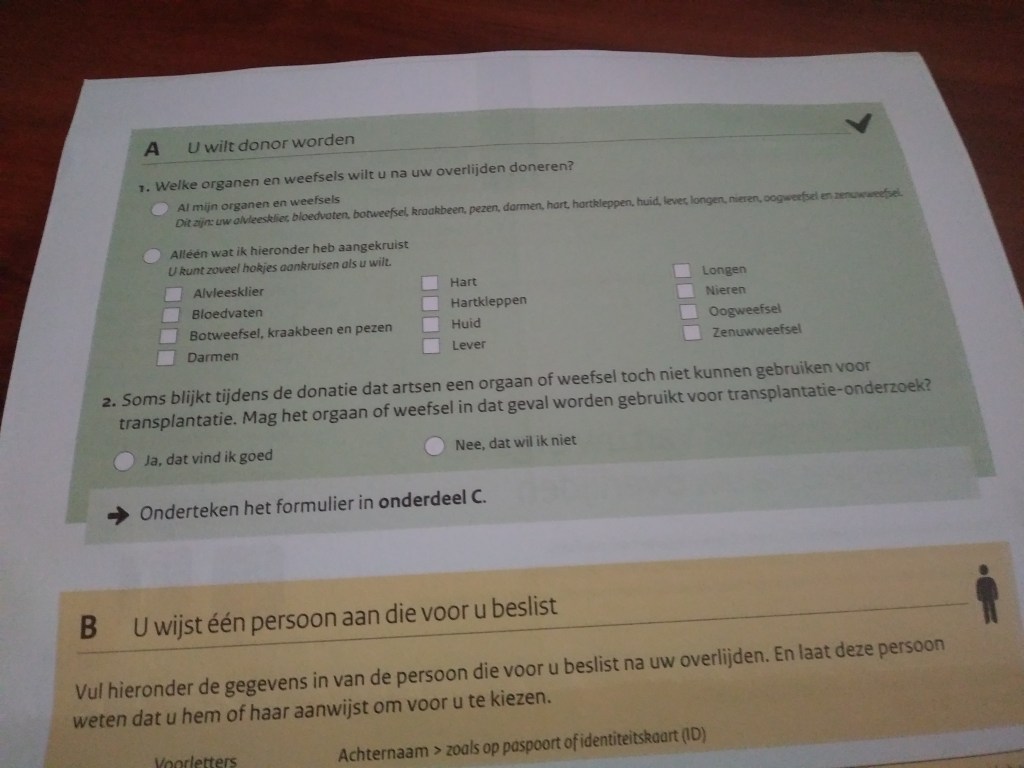 13 lutego 2018r holenderski parlament przegłosowal ustawę, która mówi o tym, że każdy dorosły i zameldowany obywatel kraju, będzie potencjalnym dawcą organów po swojej śmierci. Osoby, które dotychczas nie zarejestrowały się jako dawcy, otrzymają list z zapytaniem, czy chciałyby po śmierci przekazać organy do celów medycznych. Odbiorcy, którzy nie udzielą odpowiedzi na pierwszy list, oraz kolejny, wysłany 6 tygodni później, będą traktowani jako dawcy. Jednak w każdej chwili przysługuje im zmiana tego statusu. Wybór nie ogranicza się do opcji „tak” lub „nie”- o dalszym losie organów, na wniosek zainteresowanego zadecyduje rodzina lub konkretna, wskazana wcześniej osoba. Osoby, które odmówia oddania swoich narządów, nie będą brane pod uwagę, gdy będą same potrzebowały np serca. Pierwszeństwo mają osoby z decyzją na „tak”. Październik w Holandii, to miesiąc, w którym organizowany jest „donorweek”, czyli „tydzień dawcy”. W tym czasie w mediach porusza się wiele tematów związanych z przeszczepami narządów i tkanek. Również wtedy wysyłane są listy w sprawie przystąpienia do Rejestru Donacji. Mieszkając jeszcze w Polsce, w portfelu nosiłam kartkę z decyzją o oddaniu swoich narządów. Zresztą cały czas ją mam. A teraz wyślę list, także ze zgodą 🙂