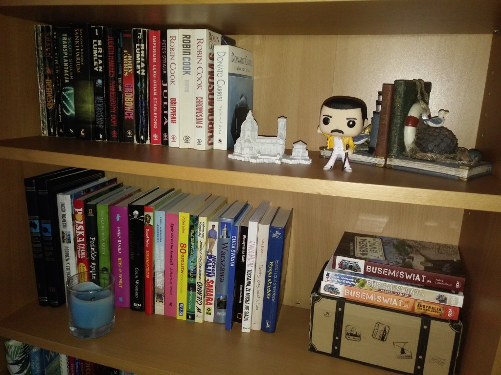 Dlaczego stoi w salonie? Z dwóch powodów. Po pierwsze, po prostu lepiej się prezentuje tu, niż w sypialni. A po drugie, w pokoju się nie zmieści. Meble do sypialni, to cały komplet (był w nim też ów regał, ale o tym napiszę osobny post, gdy już cały pokój będzie na tip top skończony). Jak wiadomo, pokoje w szeregowkach do sporych nie należą. Dlatego regał stanął w salonie i tu wygląda naprawdę dobrze. A ja mam miejsce na swoje książki 📚😛 Poza tym dokładnie taki kolor i kształt wymyśliłam sobie już wcześniej dla moich ksiąg i udało się przypadkiem taki wstawić 🙂 Pierwszy jasny regał pochodzi z kringloopa i w przyszłości pójdzie do drugiego pokoju, a obok tego sypialnianego staną dwa kolejne też „sypialniane”. I dla mnie będzie idealnie 😁 Doszłam do wniosku, że teraz mam za mało książek 😳 Kilkanaście czeka na mnie w Polsce. Ale to i tak za mało i biblioteczke trzeba będzie uzupełniać ☺