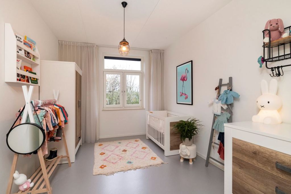 Pokoik dziecięcy w jasnych kolorach. Komplet: niewielka szafa,komoda i łóżeczko, mamy znowu drabinke i drewniany wieszak na ubranka.