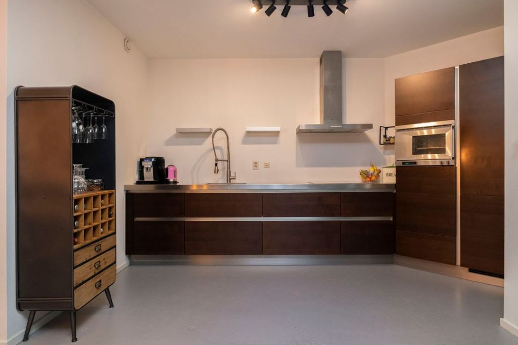 Kuchnia to niewielki aneks także połączony z salonem. Meble nowoczesne. Do tego fajny barek na wina i szkło 🍷🍷🍷