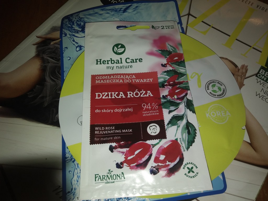 Przejrzałam jeszcze inne maski 😊 I kupiłam m.in polskiej firmy Farmona: odmładzająca maska z ekstraktem z dzikiej róży, bogatym w wit.C, z kwasem hialuronowym i kompleksem anti-aging, który wygładza naskórek. No cóż… Po 30tce, należy się odmładzac 😜