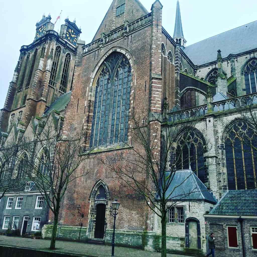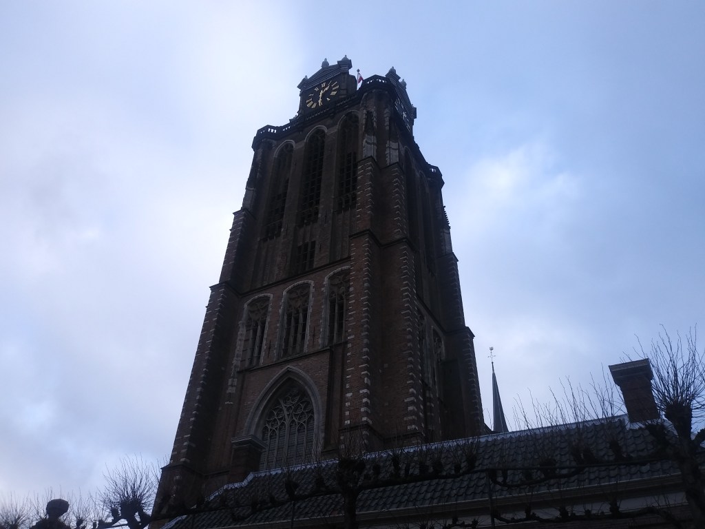 I wreszcie Grote Kerk (Onze Lieve-Vrouwekerk), czyli Duży Kościół zbudowany między 1284 a 1470r. Stał się kościołem protestanckim w 1572r i takim pozostaje do dzisiaj. Budowę wieży rozpoczęto w 1339r Jednak wraz z kościołem została zniszczona podczas pożaru. Pierwotnie miała być zwieńczona iglicą. Ale ze względu na miękką ziemię, powodującą odchylenie, została niedokończona do 1506r. W 1626r zwieńczono ją czterema barokowymi tarczami zegarowymi i niewielkim daszkiem. Wieża ma 275 schodów. Znajduje się tam największy dzwon wahadłowy w Holandii, ważący 10 ton. Czytałam, że wejście do samego kościoła jest bezpłatne a na wieżę kosztuje 1€. My nie skorzystaliśmy.