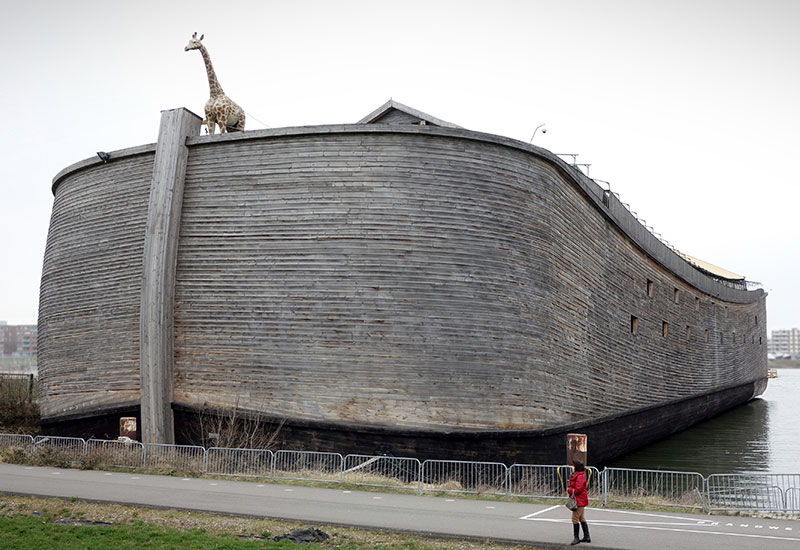 A o co chodzi z Arką Noego? Już wyjaśniam. Otóż pewien Holender- Johan Huibers, przedsiębiorca i budowlaniec- miał kiedyś sen. Śniła mu się ogromna powódź, która zalała Holandię. Stwierdził, że wybuduje arkę na podobieństwo tej biblijnej. I zrobił to! Statek został oficjalnie otwarty do zwiedzania latem 2012r. Wymiary to: ok 30 metrów szerokości, 23 metry wysokości i 135 metrów długości, czyli niemal tak samo, jsk w Biblii. Co znajdowało się w środku? Np restauracja i mini zoo. Niestety odwiedziło go za mało ludzi, budowa się nie zwróciła. Właściciel zamknął arkę w 2016r. Od tamtej pory stała caly czas w porcie w Dordrecht i można ją było podziwiać z zewnątrz. No i ja myślałam, że nadal stoi. Pojechaliśmy (od centrum to ok 10min drogi autem) i nic. Zero. Guzik. Po arce ani śladu 😢 Potem dowiedziałam się, że w 2018r ciut się rozbiła i poszła do naprawy. Inne źródła podają, że jest w trakcie wielkiego rejsu i że zmierza do Izraela albo do Stanów. A muszę dopisać, że jest to druga tak wielka Arka Noego na świecie. Pierwsza stoi w Hongkongu, ale to ta holenderska jest jedyną pływającą 😲 Na zdjęciach robi ogromne wrażenie a co to dopiero zobaczyć ją na żywo!