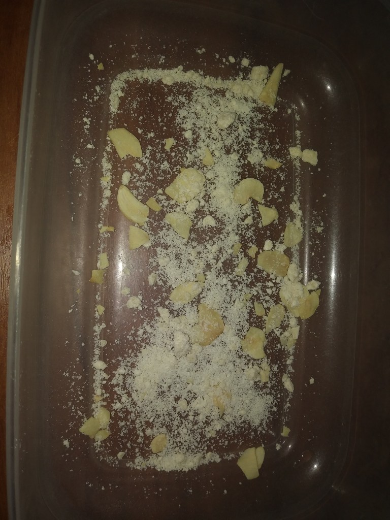 Najlepiej przecisnąć przez praskę świeży czosnek, ale można też zrobić miksturę ze sproszkowanego. Ja miałam taki w kostkach i płatkach.