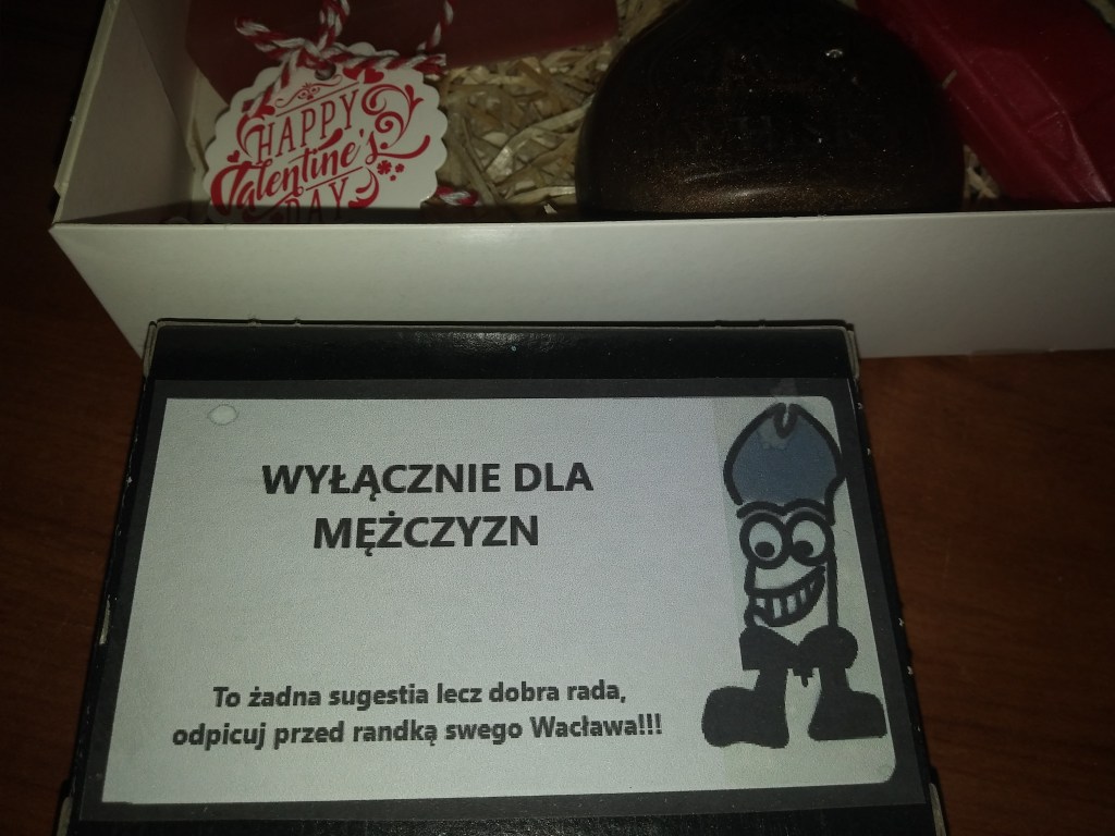 Pan Mąż otworzył prezent, spojrzał zaskoczony 😅 Wyjaśniłam mu dobitnie co to jest. Obejrzał, powąchal i stwierdził, że to bardzo fajny, taki inny prezent. I ładnie pachnie 😊