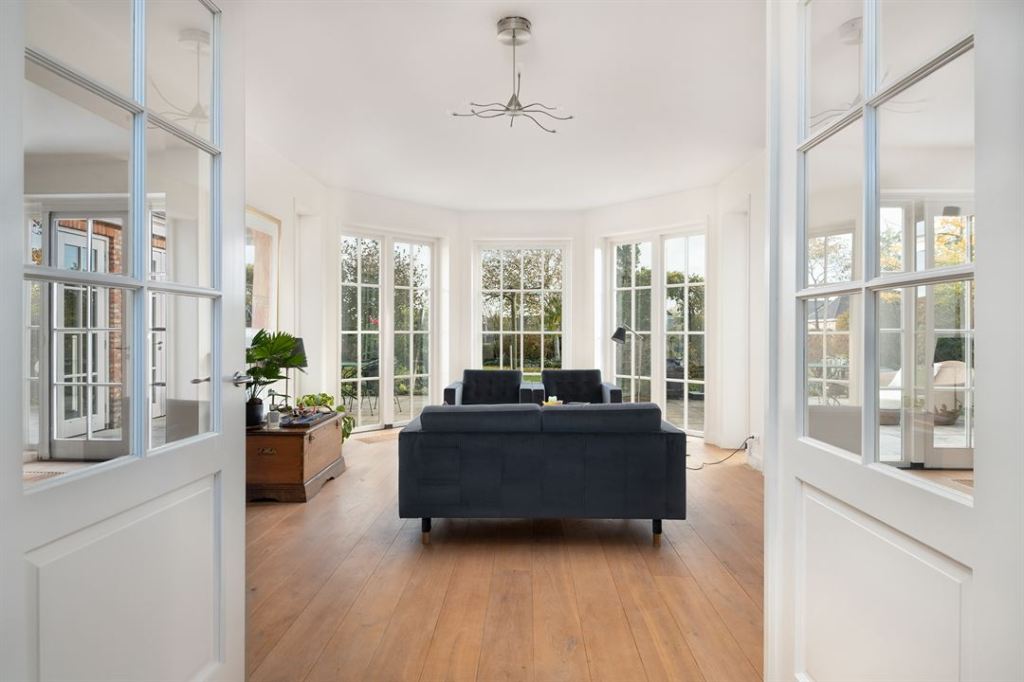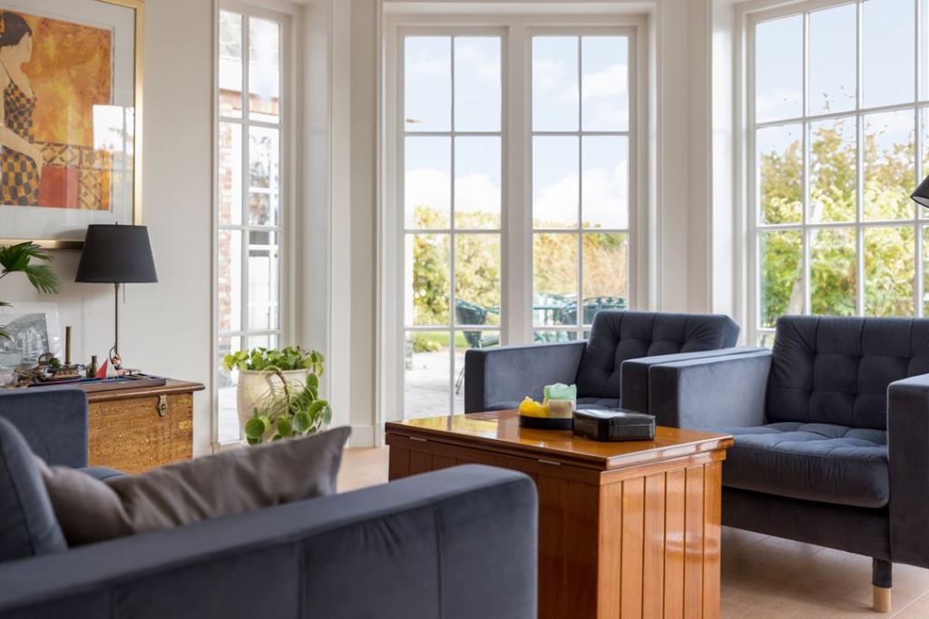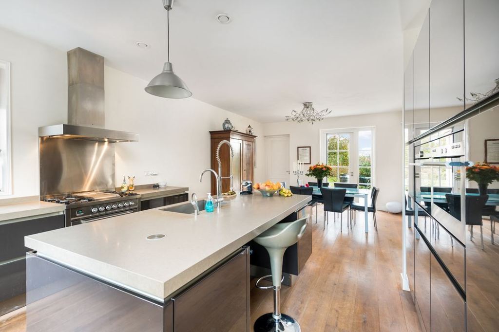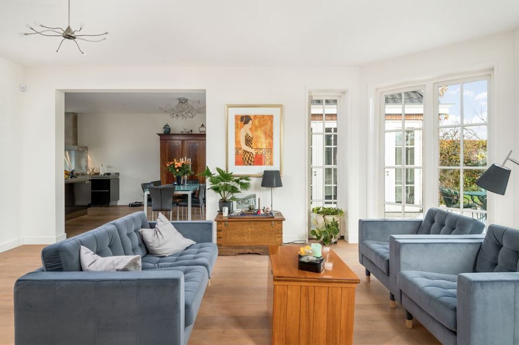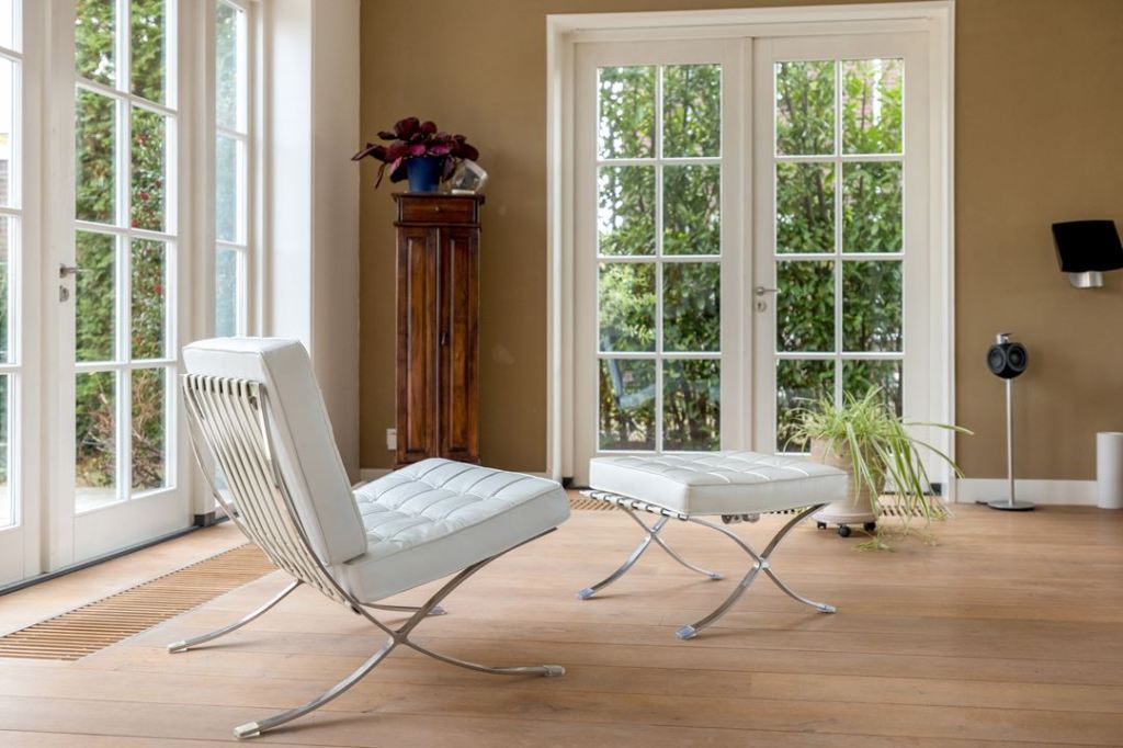 Duży dom, przestronne wnętrza w jasnych kolorach. Dominuje nowoczesność, ale i jest kilka drewnianych mebli.