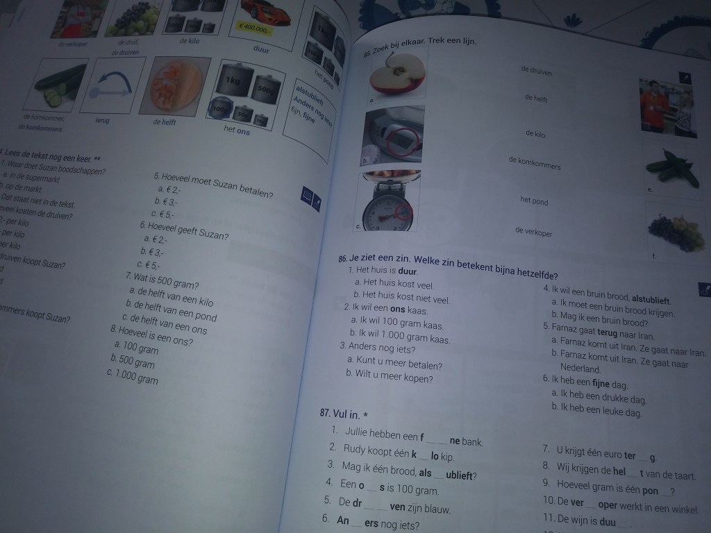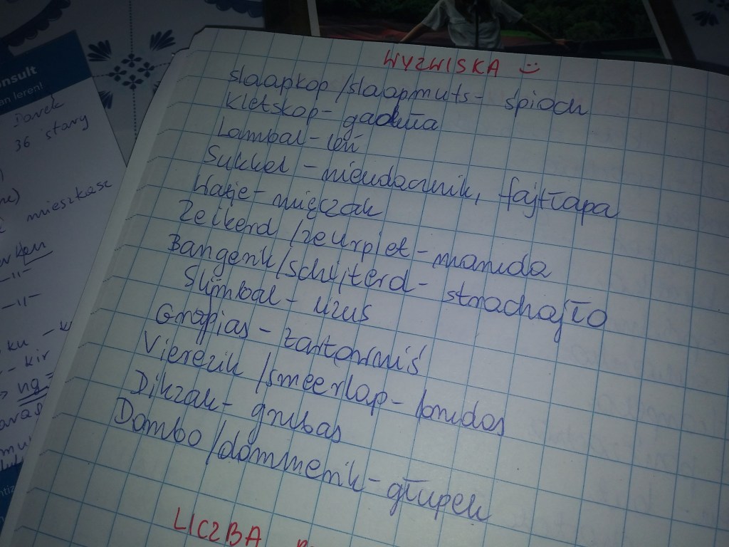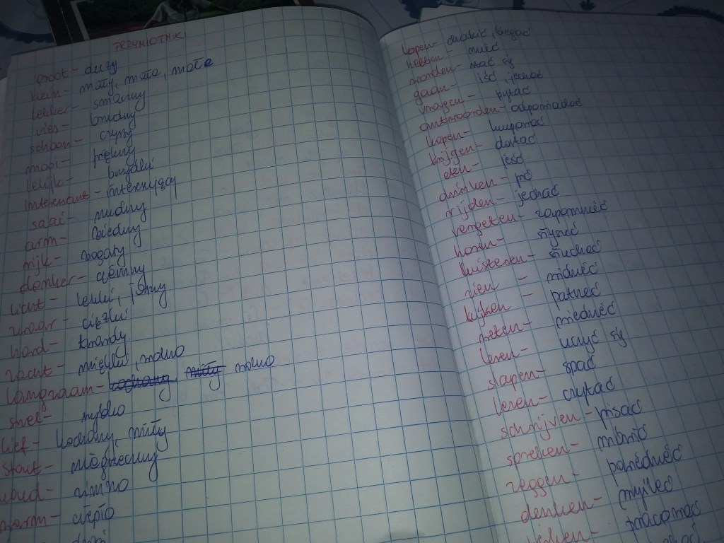 Polecam aplikacje wrts. Robisz tam własną listę słówek i możesz zrobić sobie sprawdzian. Świetna do nauki nowych wyrażeń i słówek. Ponadto w aktion możesz kupić słownik angielsko holenderski więc do podszkolenia dwóch języków ale jest i sam holenderki słownik gdzie masz definicje słów holenderskich po holendersku. Więc na przykład kaczka – żółty ptak co robi kwa kwa. Więc uczysz się tak synonimów i jak określać pewne rzeczy. Jak dla mnie świetny kawałek papieru za całe chyba 4 euro. Domyślam się że lekc e w piątek po prascy to bolesne doświadczenie. Cieszę się że ja mogłam sama wybrać bo I ja jestem antyspołeczna to wolałam mieć indywidualne. Ale pożytek najważniejszy. Super ze się uczysz i masz zapał. Tak trzymać. A mogę zapytać jak długo tu jesteś?