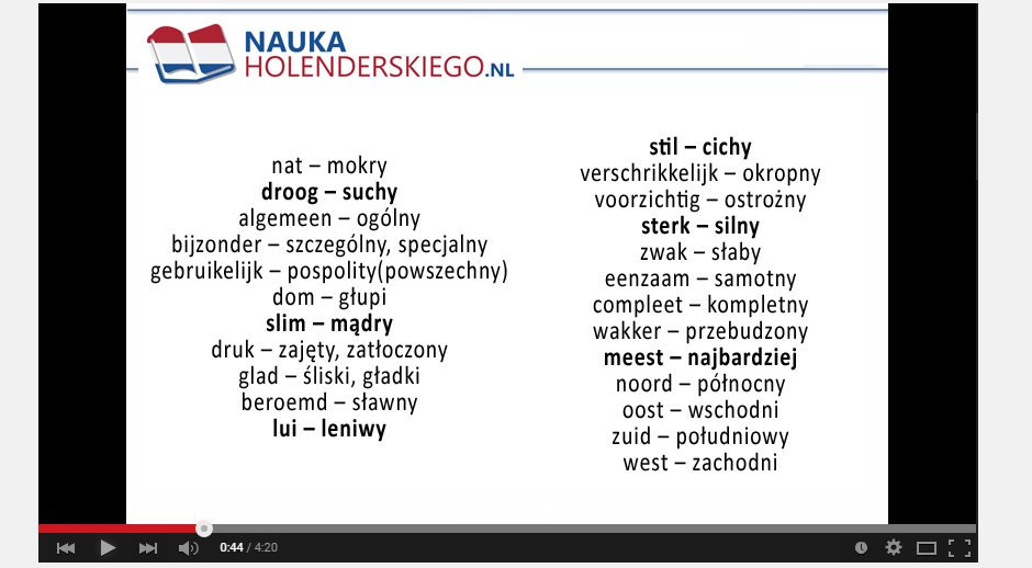 Do tego, na facebooku polubiłam stronę z fiszkami. Moje kupione kiedyś fiszki zabrałam ze sobą na urlop do Polski w celu uczenia się tam języka. Oczywiście nie muszę wspominać, że guzik się na urlopie uczyłam a do tego jeszcze zapomniałam ich zabrać z powrotem do Holandii 🙊😣 Oprócz tego, znalazłam na YouTubie fajne filmiki do nauki.