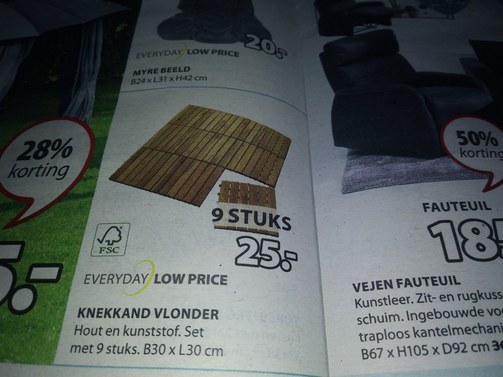Dzisiaj znalazłam w skrzynce na listy 📬 plik gazetek ze sklepów. Przejrzałam je i zainteresowała mnie ta z Jyska. Jak mało kiedy. Znalazłam tam drewniane „płytki”, które po połączeniu tworzą coś na wzór tarasu. Myśleliśmy nad paletami. Ale te drewniane kwadraty też są fajne. W piątek chyba tam zajrzymy i kupimy. Najpierw wymierzymy ile potrzeba.