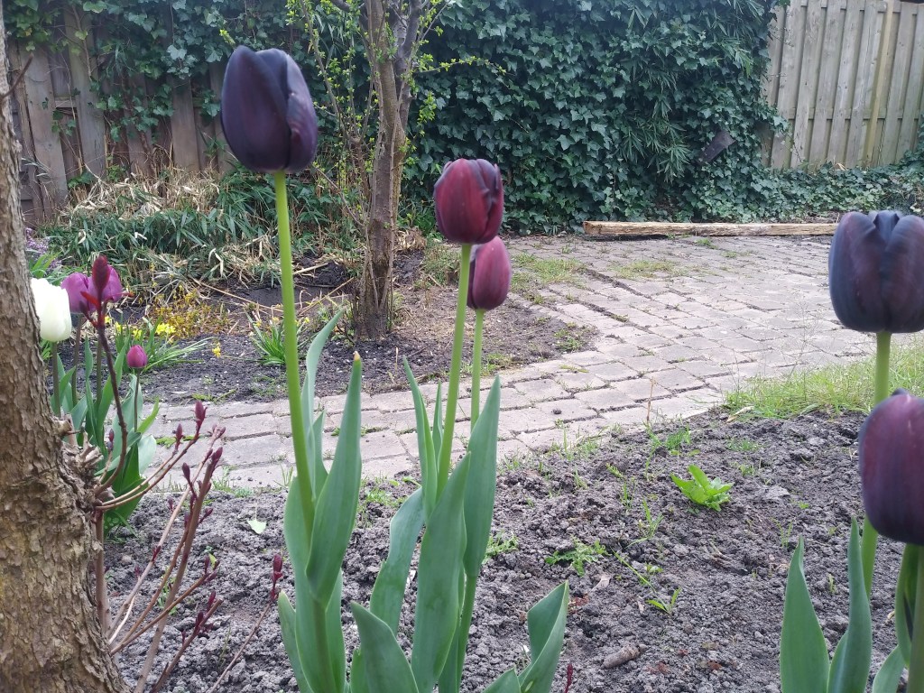 Tulipany 🌷🌷🌷 mam w trzech kolorach: białym, różowym i czarnym. Czekałam szczególnie na te czarne, bo chciałam zobaczyć jak wyglądają na żywo. No i okazało się, że zdjęcie na opakowaniu cebulek swoje, a rzeczywistość swoje. Nie jest to taka typowa czerń. Raczej granat albo fiolet wpadający w kolor czarny.
