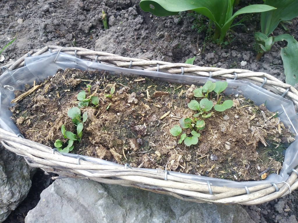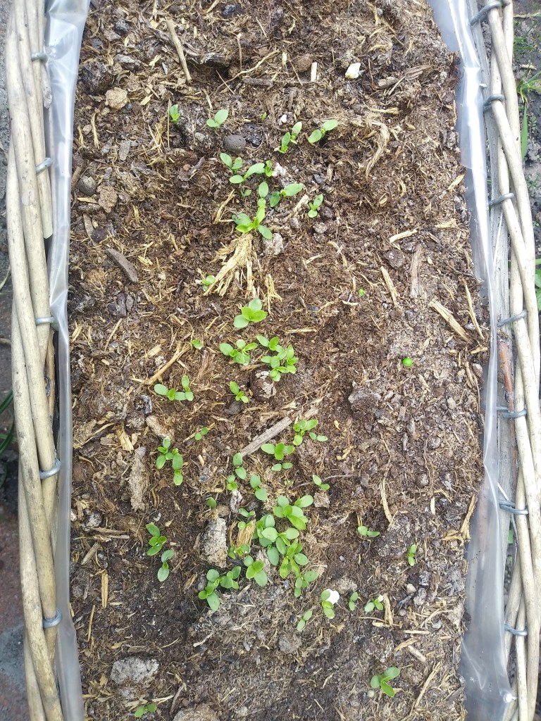 Do tego powschodziły inne zasiane kwiatki. Większość jest w doniczkach, ale niezapominajki wsadziłam bezpośrednio do ziemi i nie wiem, czy coś z nich wyrośnie. Widać coś malutkiego zielonego, ale nie wiem, czy to chwast czy niezapominajka 😅 Dlatego narazie żadnych chwastów nie tykam. Czekam, aż wszystko podrośnie.