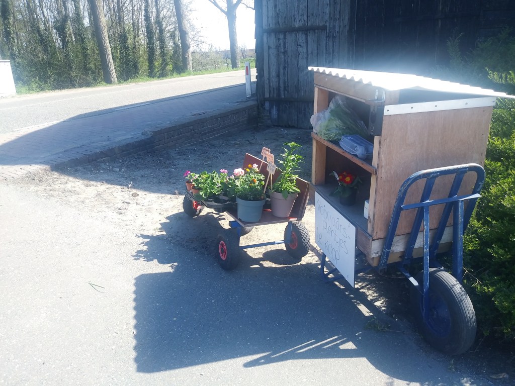 Ogólnie tego typu „sklepy” to norma w Holandii o każdej porze roku. Ludzie sprzedają w ten sposób np wyhodowane przez siebie kwiaty, warzywa, owoce, swojskie jajka czy jesienne dynie różnej wielkości 🙂 Dla mnie super sprawa 🙂