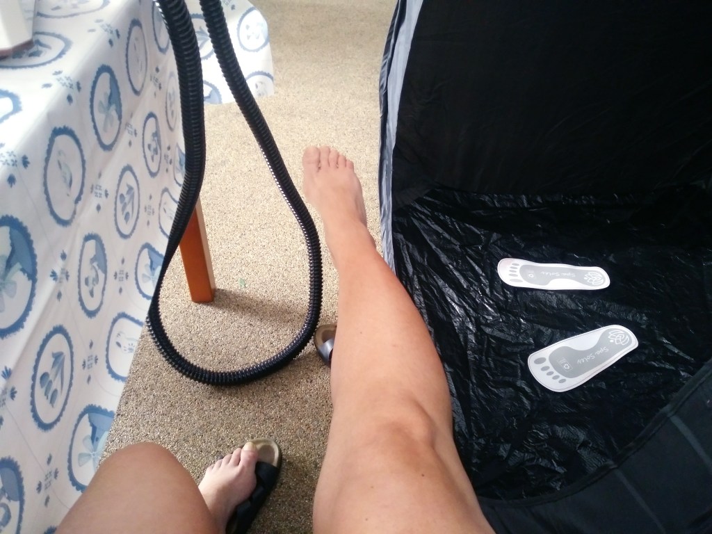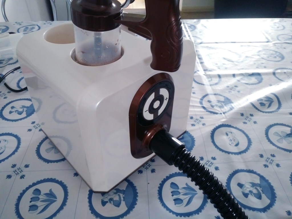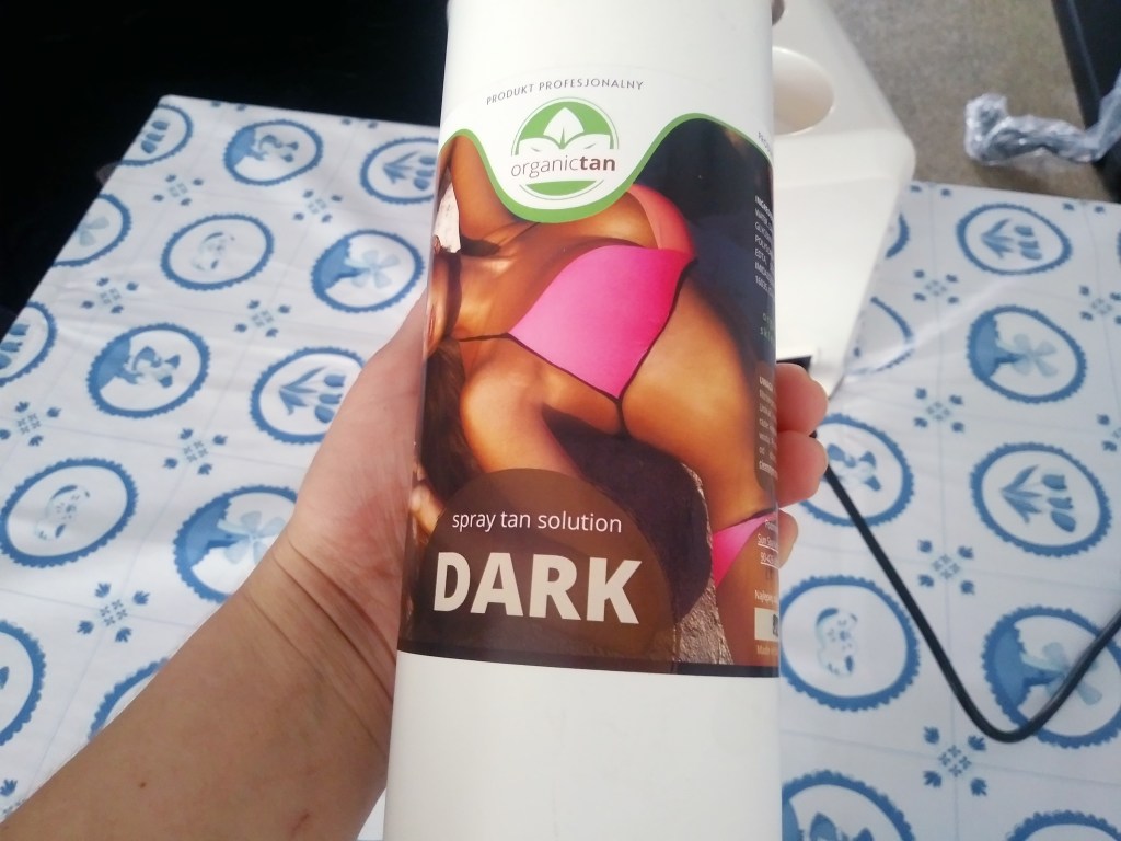 Chodzi o opalanie natryskowe 🙂 Korzystałam kiedyś z tego w Polsce. Strasznie mi się spodobało i pewnego wieczora zapaliła mi się żarówka 💡i stwierdziłam, że może tutaj, w Holandii spróbuję się tak opalać. Pytanie: gdzie? Nie było w mojej okolicy opalania tanning spray. Więc wzięłam sprawy w swoje ręce. Pan Mąż ma konto na polskim Allegro. Kupiłam tam cały sprzęt z kursem online do opalania 🙂 Zdobyłam certyfikat i zaczęłam aplikację na sobie. Pan Mąż mi pomógł, bo sam posiada kompresor do malowania modeli, więc wprawę ma. Opaliłam sobie najpierw nogi.