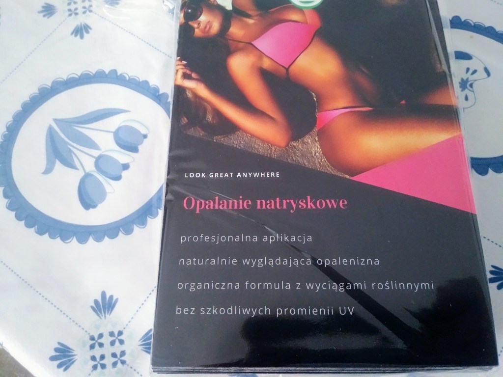Oprócz tego, mam certyfikat, dwa plakaty do salonu i peeling solny o zapachu trawy cytrynowej 🌿🍋 Wolę peelingi cukrowe, więc próbuje opracować swój własny peeling na bazie cukru i oleju kokosowego 🙂 Moje doświadczenie z samoopalaczami i peelingami jest ogromne, więc stwierdziłam, że pora iść w tym kierunku. Odezwało się do mnie kilka dziewczyn, które są chętne na opalanie, więc klientki już są 😊 Za tydzień biorę na warsztat koleżankę z pracy, która będzie robiła za modelkę 😁 Założę stronę na Facebooku i będę działać. A jeśli dobrze pójdzie, to otworzę tu małą działalność 🙂