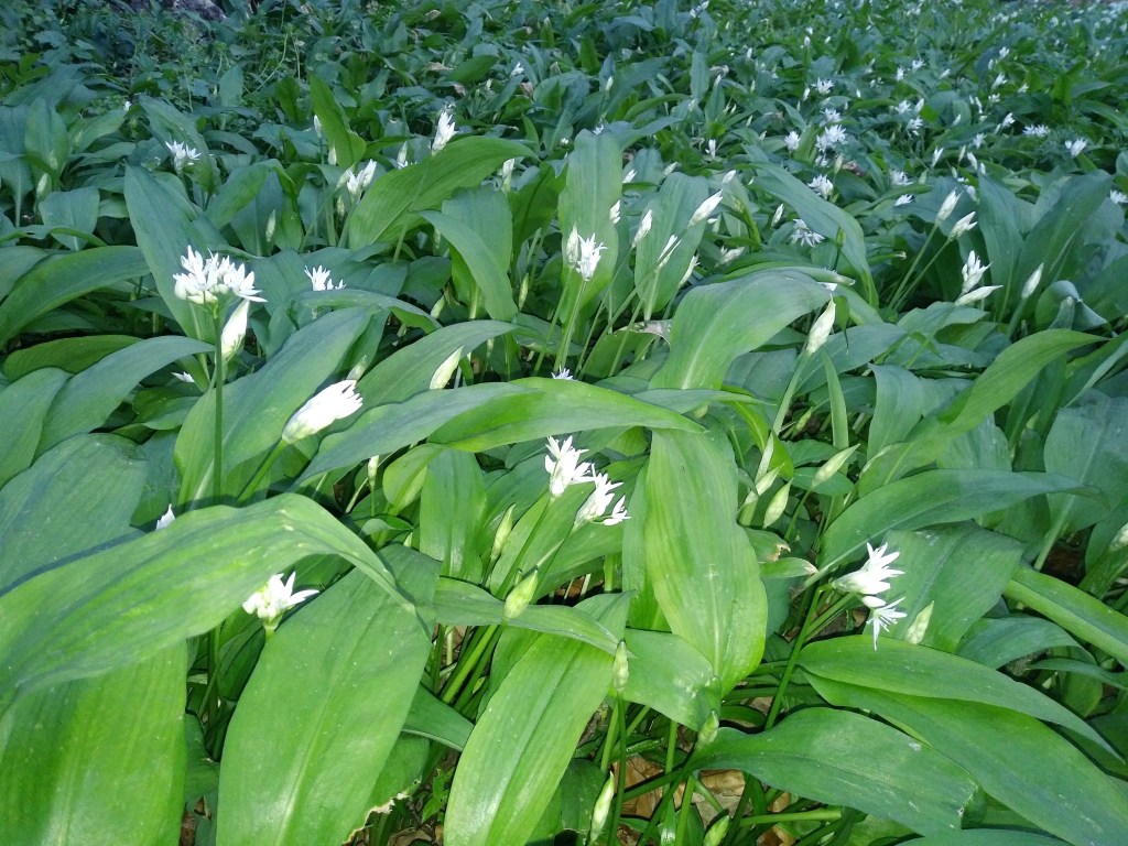 Wracaliśmy ścieżką przez lasek. W oczy rzuciły mi się rośliny o białych drobnych kwiatkach, które były niemal wszędzie. Co mnie uderzyło, to zapach. Pachniało… kiszoną kapustą 😅 Koleżanka podpowiedziała mi, że to może być czosnek niedźwiedzi. Poszukalam w internetach i faktycznie- zapach kapuchy, to czosnek 😅🙈