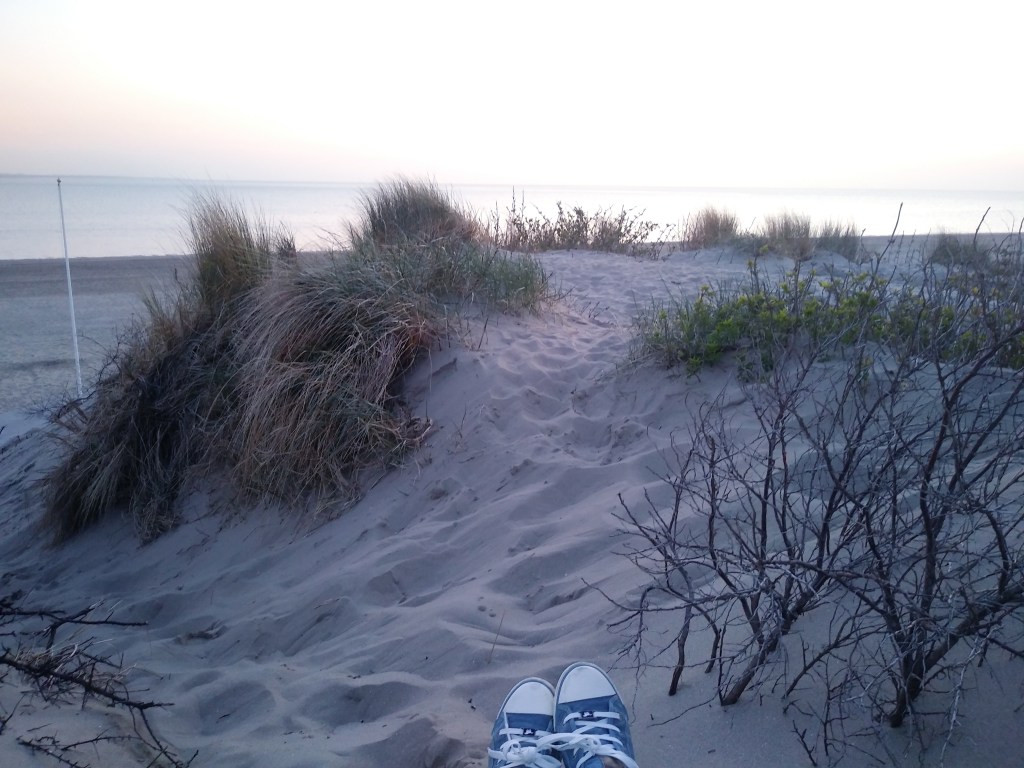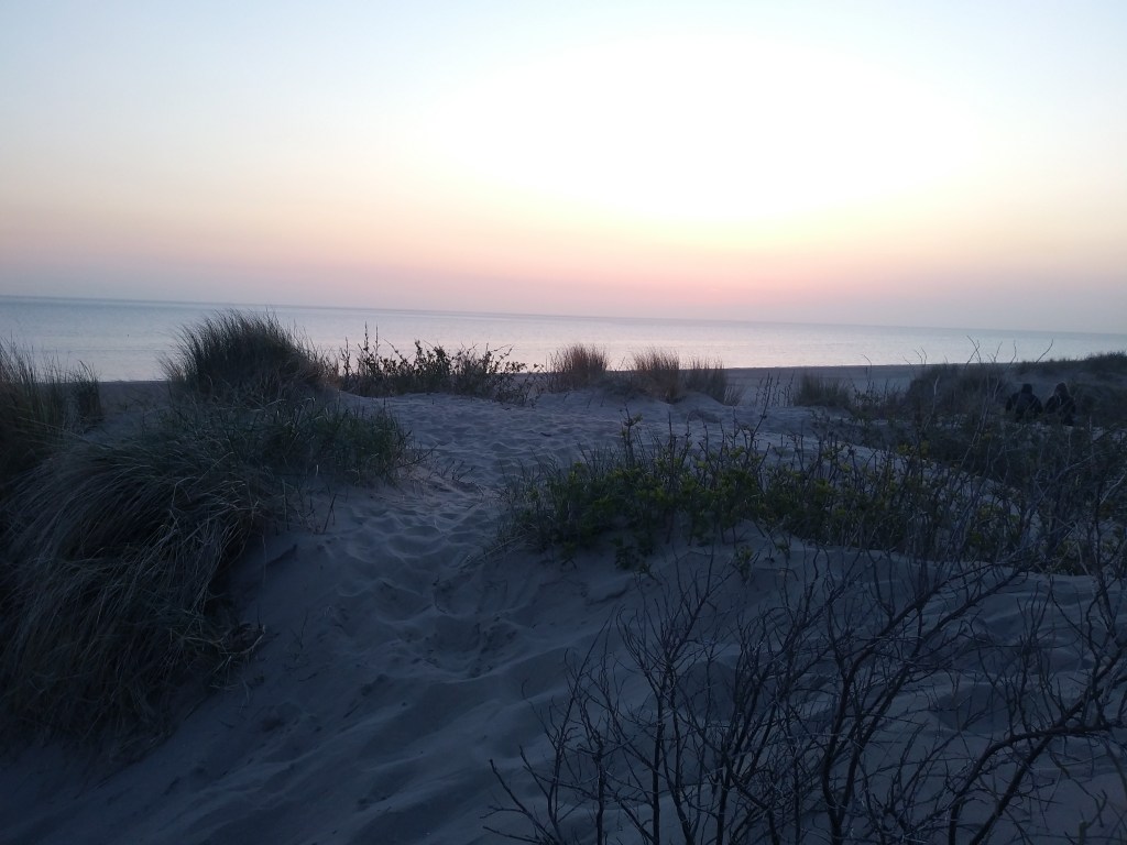 Pojechaliśmy też nad morze. Był słoneczny dzień i zachciało mi się spojrzeć na zachodzące słońce 🌅 Wdrapalismy się na wydmy, żeby był lepszy widok. Było trochę wietrznie, ale co tam… Piachu w butach był ogrom 😅