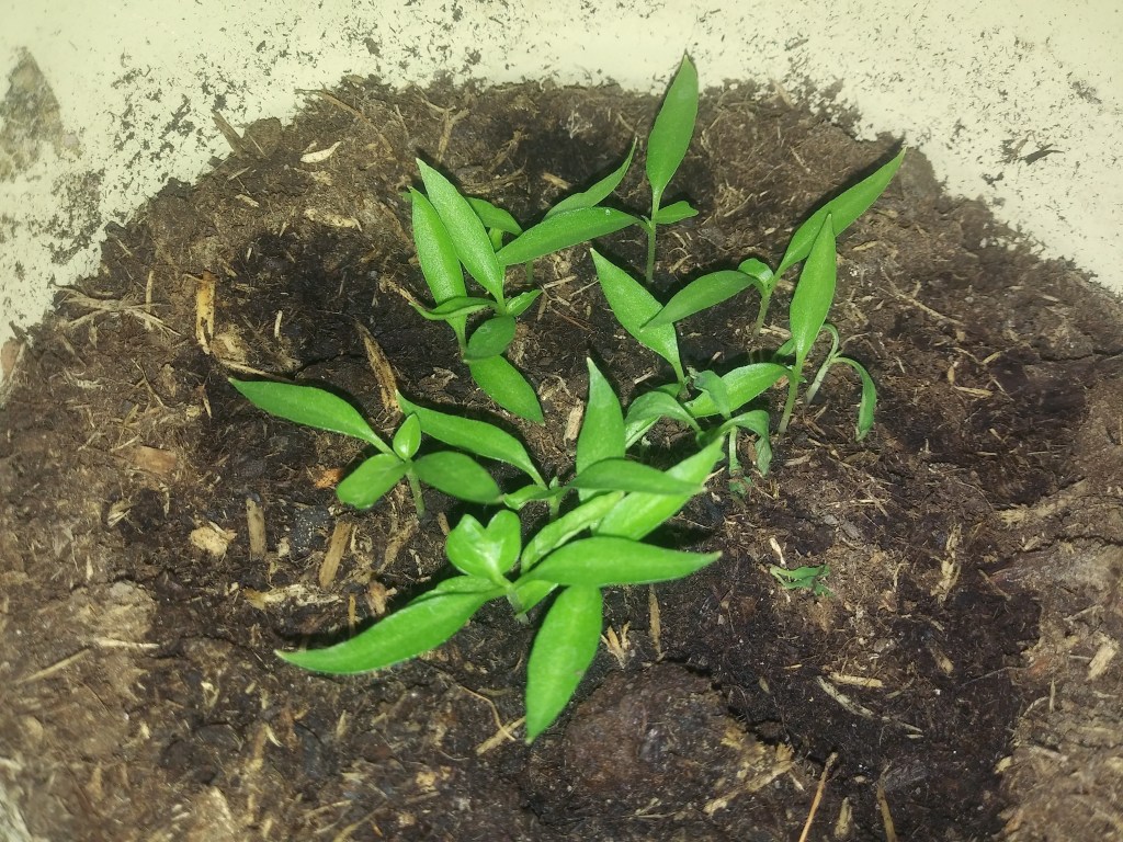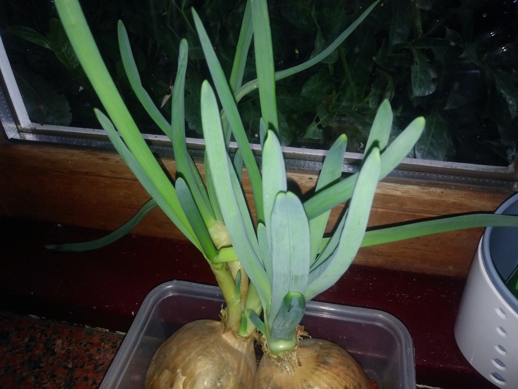 Moja wysiana papryczka chili rośnie a dwie cebule wypuściły szczypior 🙂