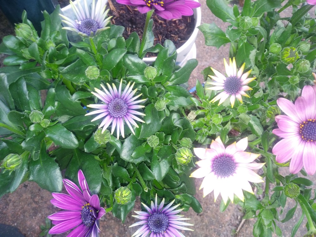 Do moich roślin dołączyły jeszcze dwie różowo- fioletowe margertki. To jakieś ostatnie sztuki z Lidla. Poluję jeszcze na białe 🙂