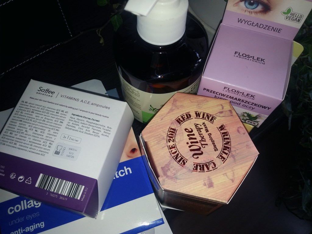 Zajrzałam też oczywiście do masek i wypatrzyłam maskę w płachcie firmy Korika z wodą z lodowca Islandii i minerałami. Do tego maska hialuronowa z panthenolem, gliceryną, alantoiną i betainą. Do koszyka trafiły też kolagenowe płatki pod oczy z kwasem hialuronowym. To moje dawne odkrycie i jest doskonałe na zmarszczki. Ja ich widocznych na szczęście nie mam a to znaczy, że działają 🙂