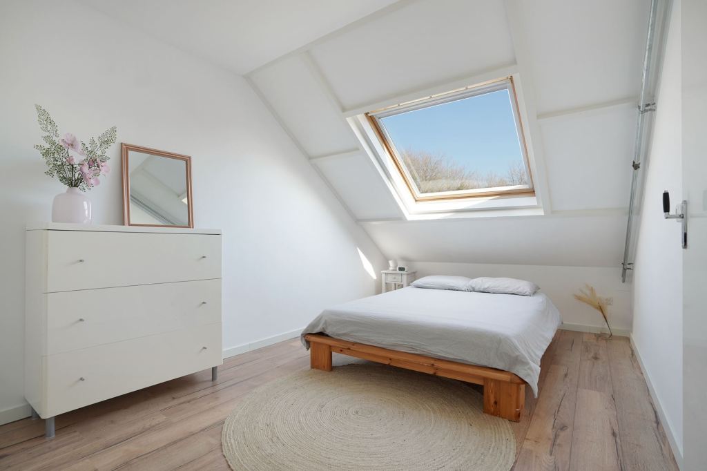 Biurko przy oknach i okno nad łóżkiem to dobre pomysły. Słońce towarzyszy pracy, gwiazdy świecą do snu. Nie wszędzie się tak da umeblować.