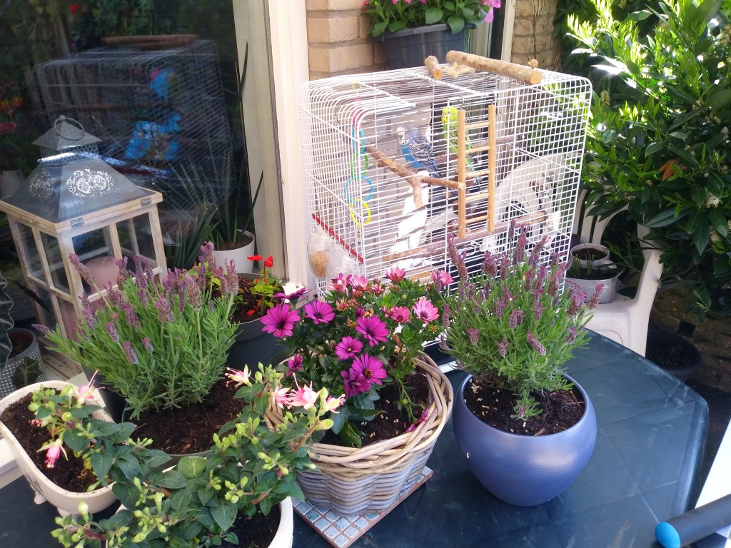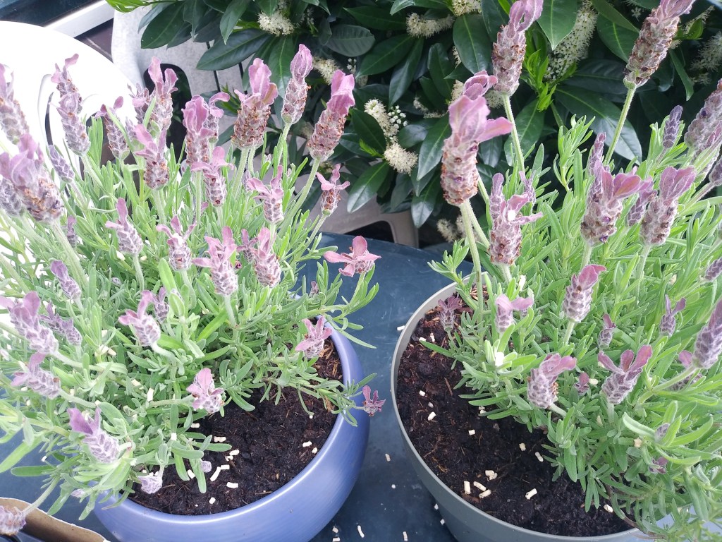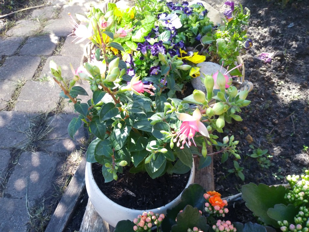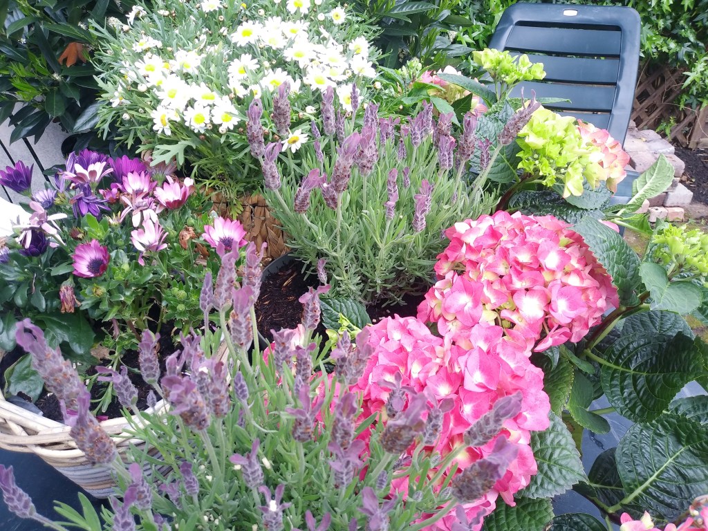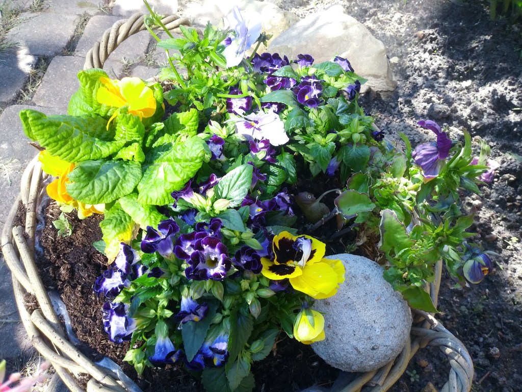 Lawenda i margerytki ładnie rosną. Reszta fiołkow też. Wcześniej wsadziłam w koszyki inne kwiatki, też oczywiście nie pamiętam już nazw, ale się przyjęły i są coraz większe 🙂